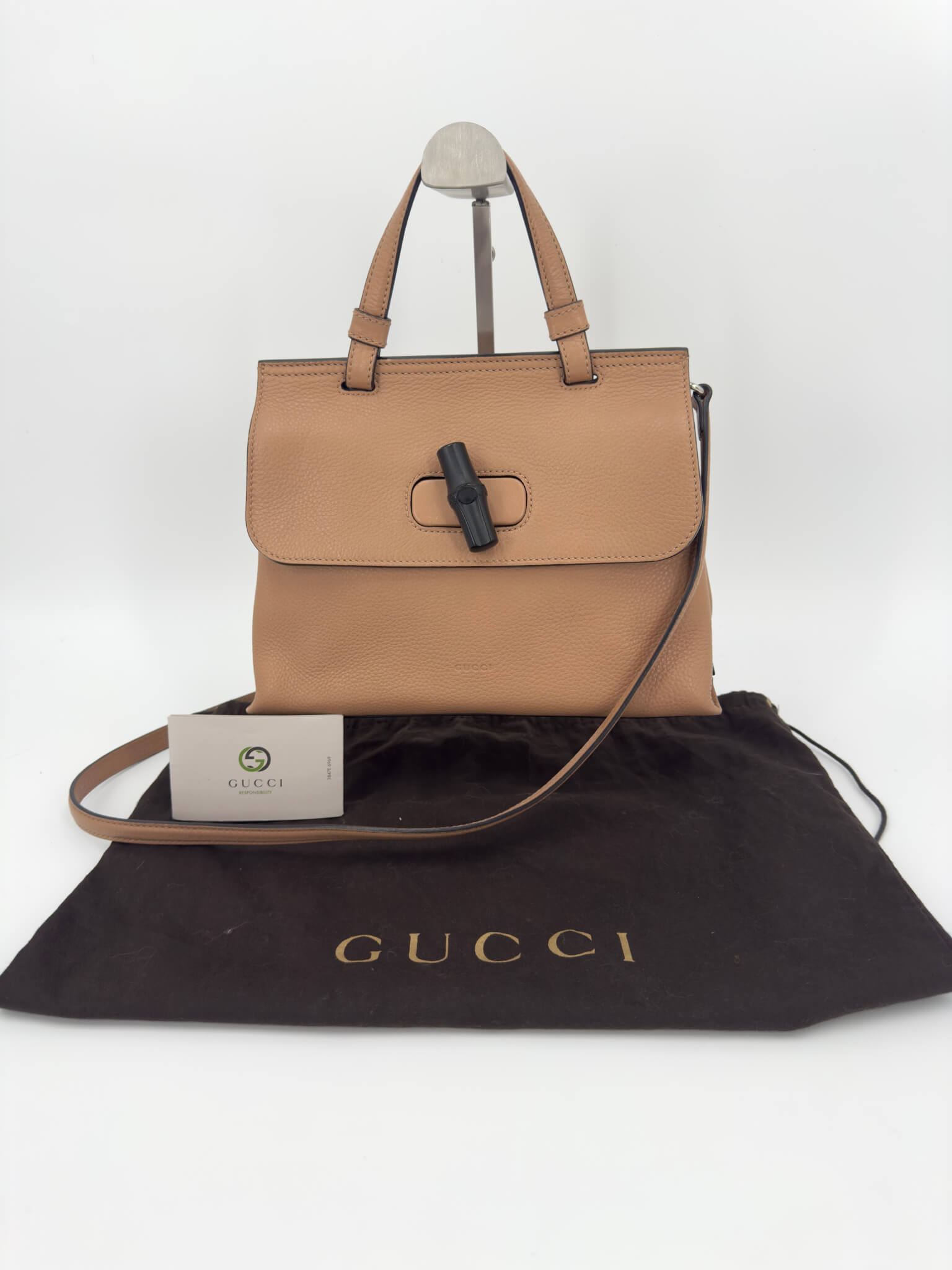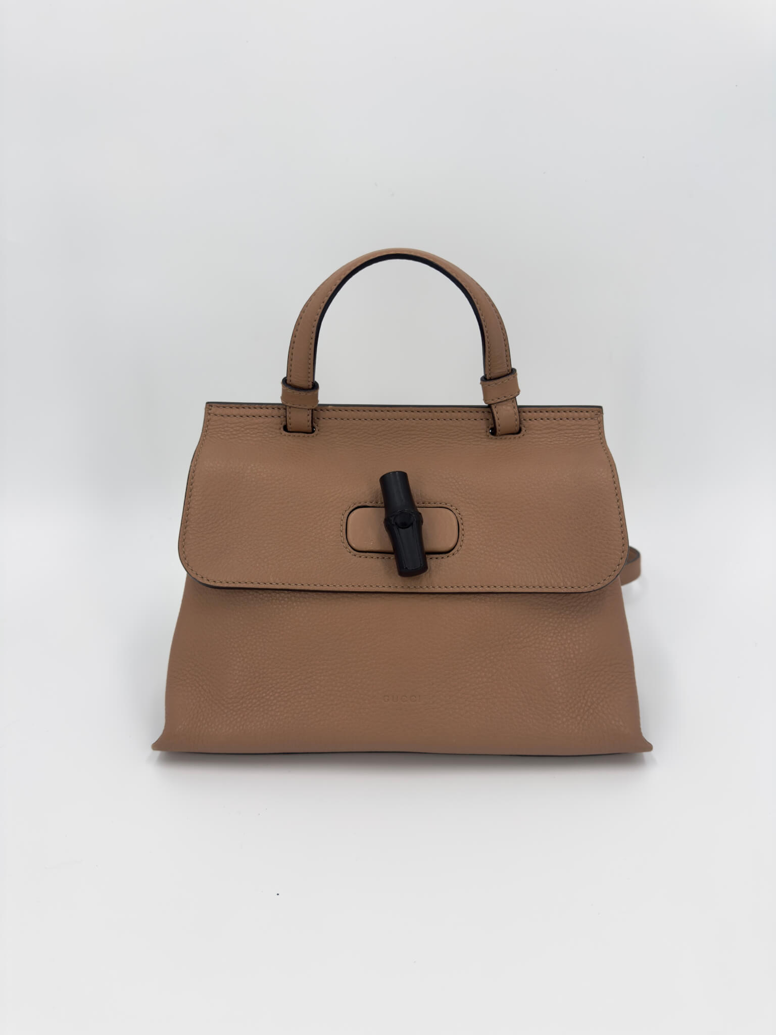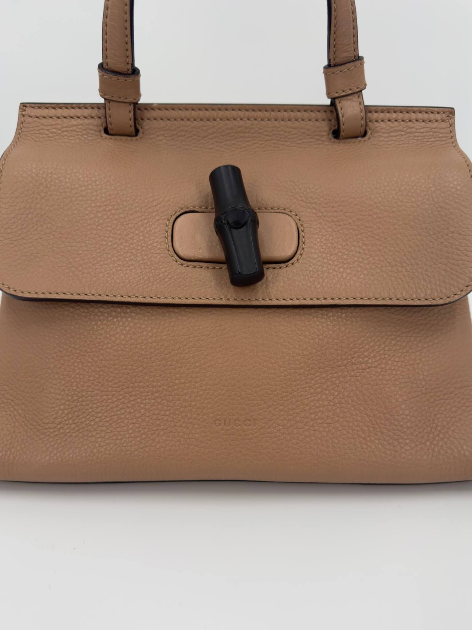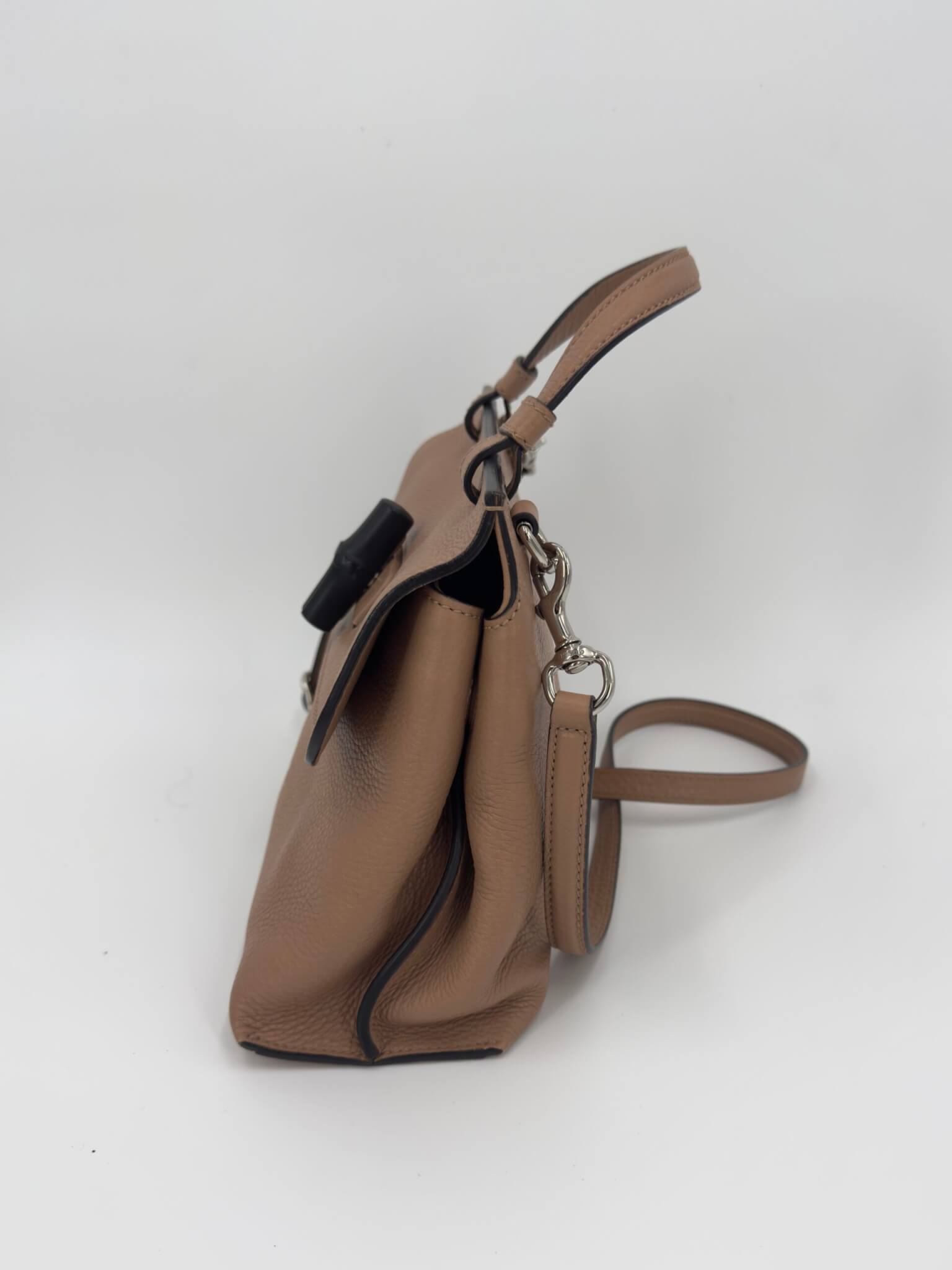 Sac Gucci Bamboo en cuir grainé rose poudré