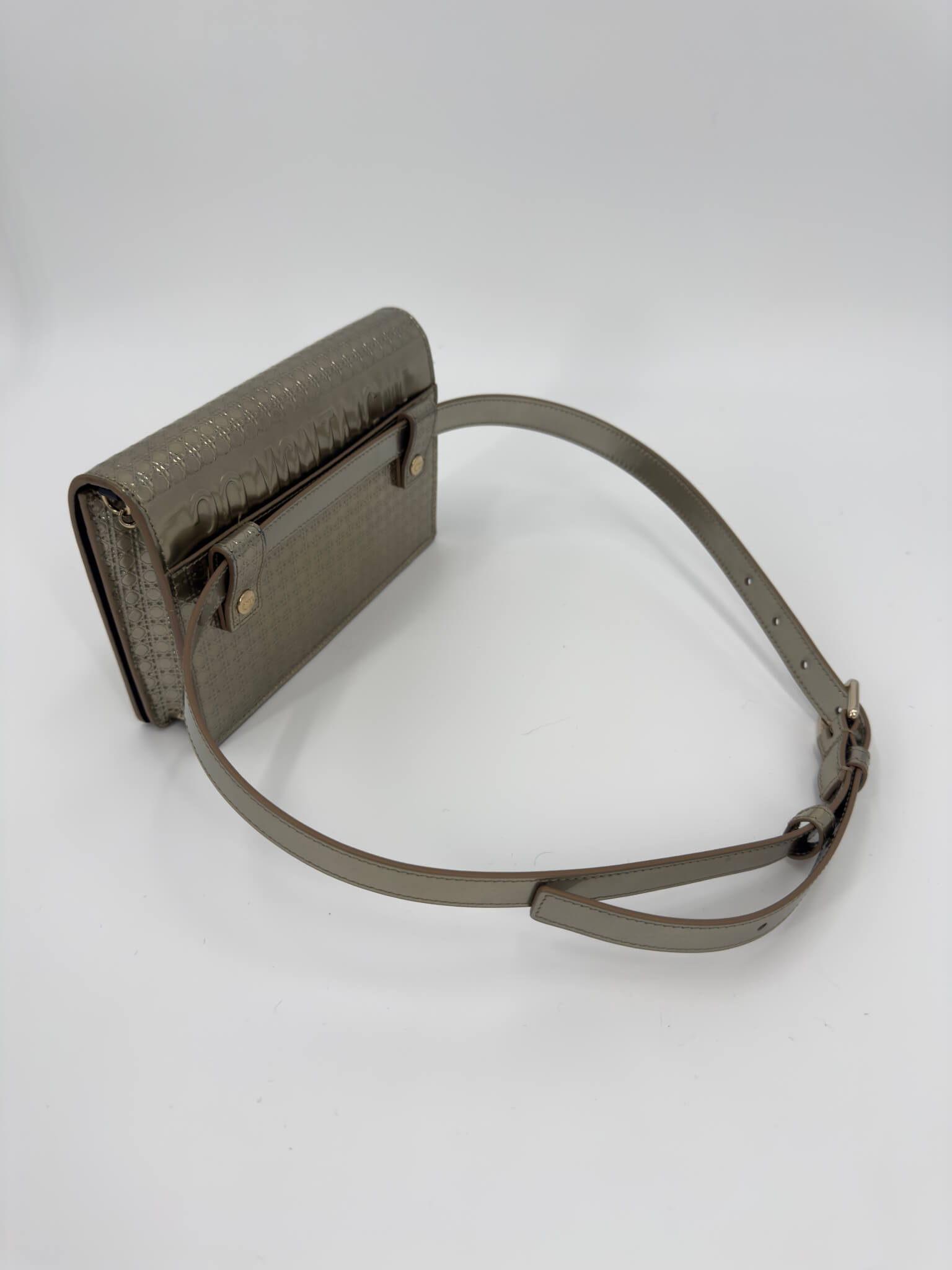 Doté de la signature CD emblématique et d’une chaîne amovible permettant un porté épaule ou croisé, avec ceinture coordonnée pour un porté taille.
