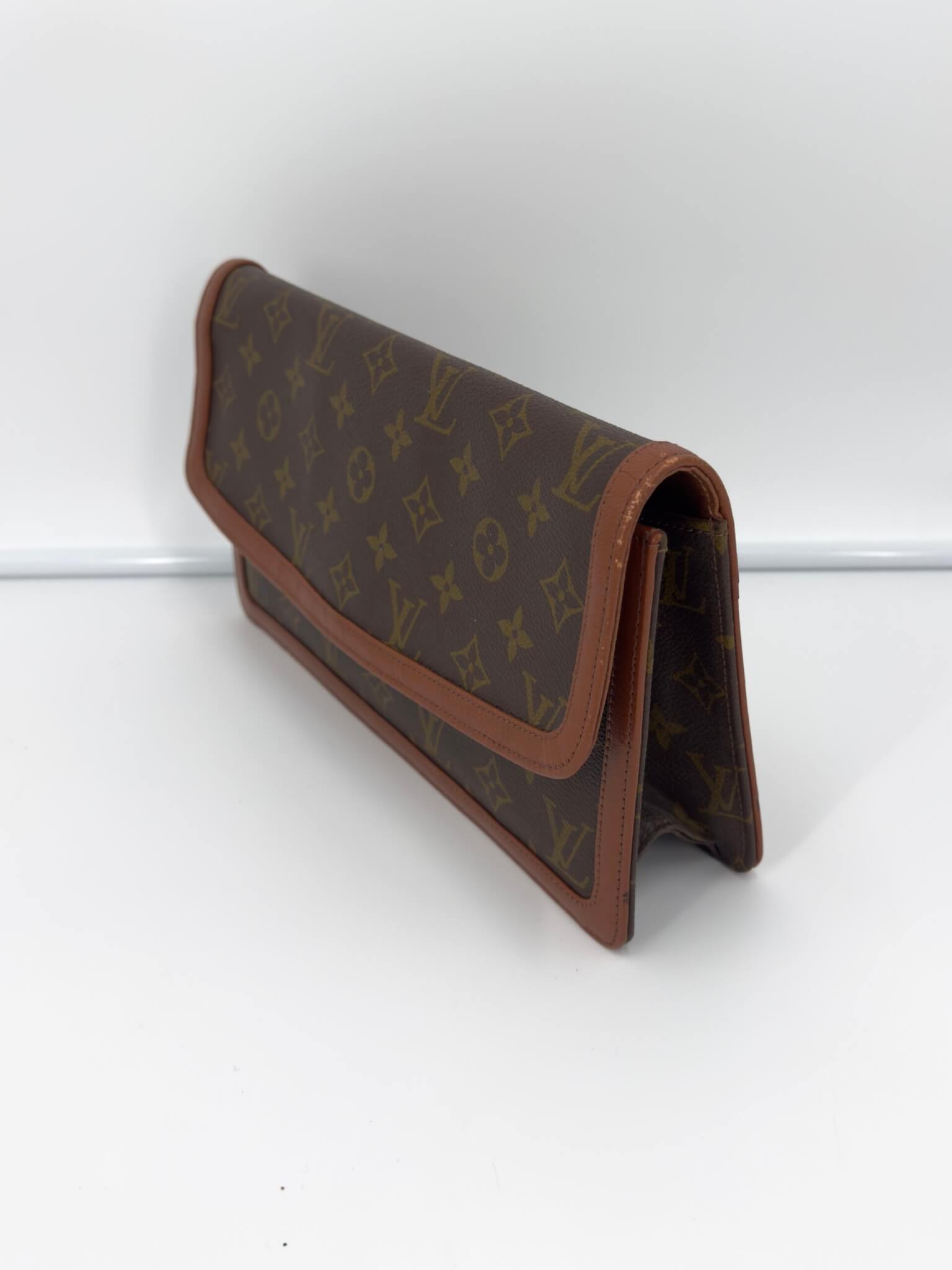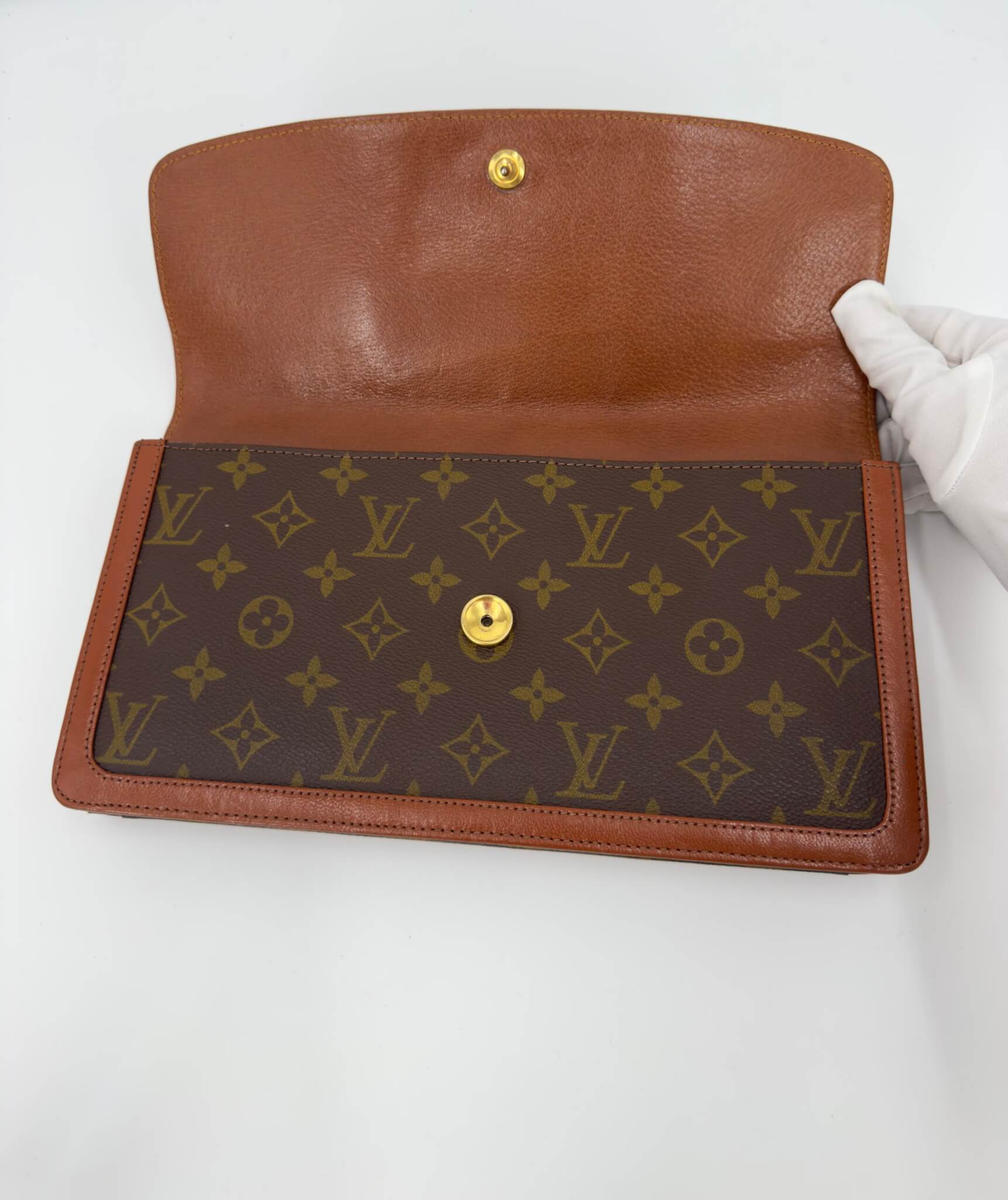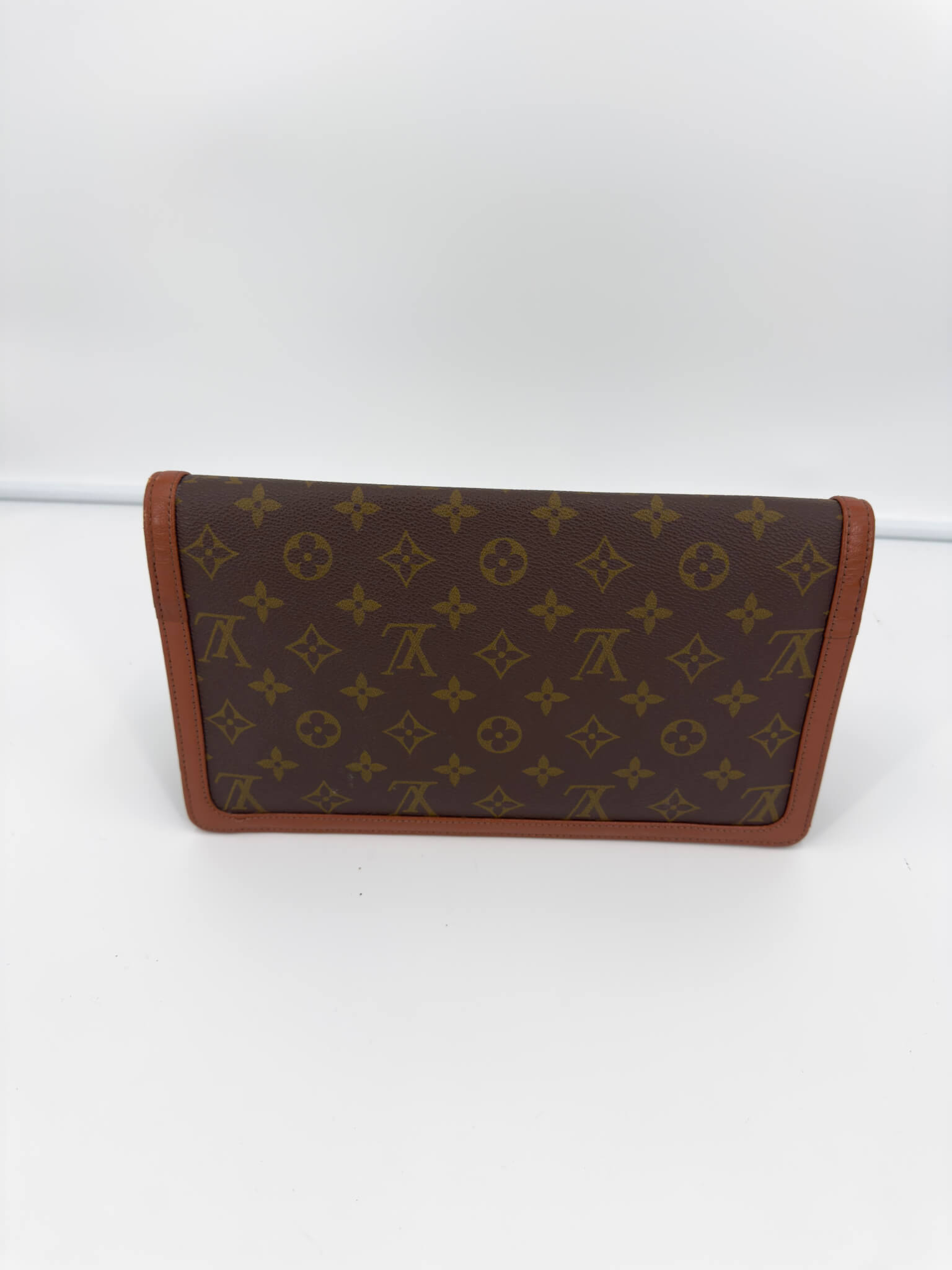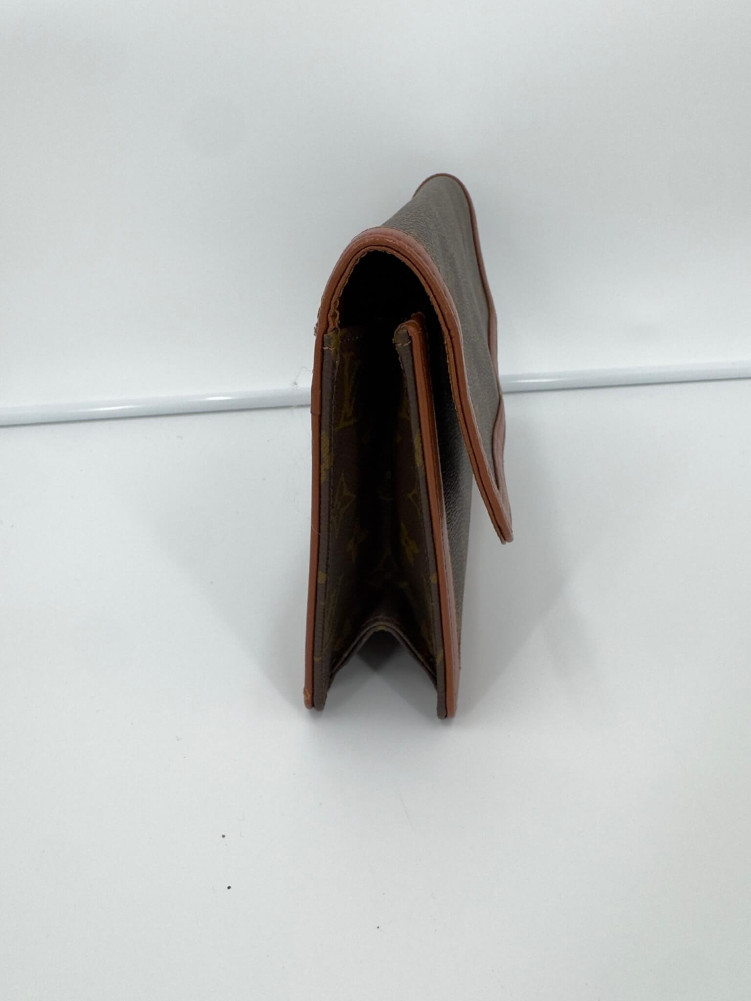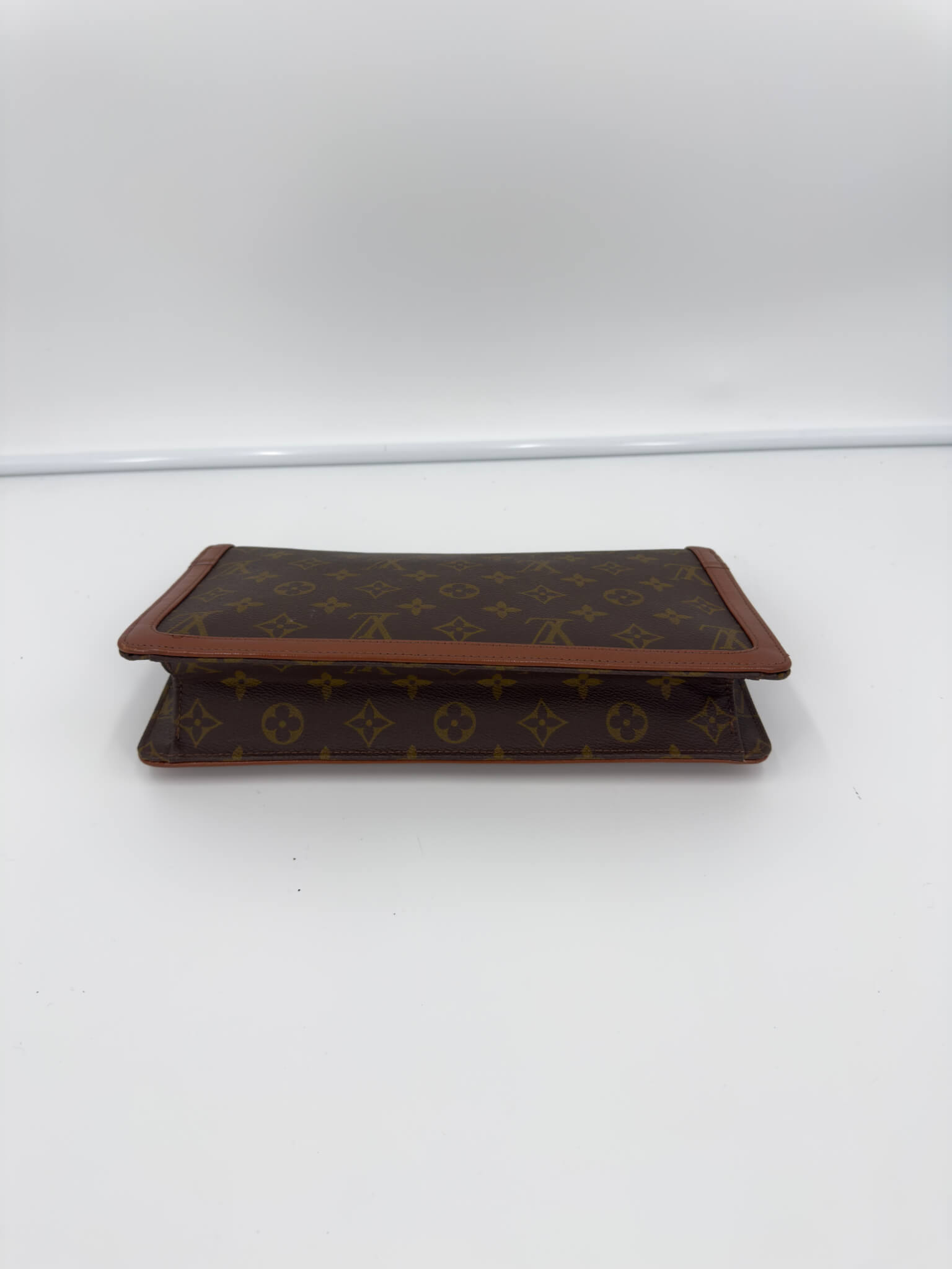 Porte-documents Louis Vuitton en toile Monogram avec liseré en cuir camel.