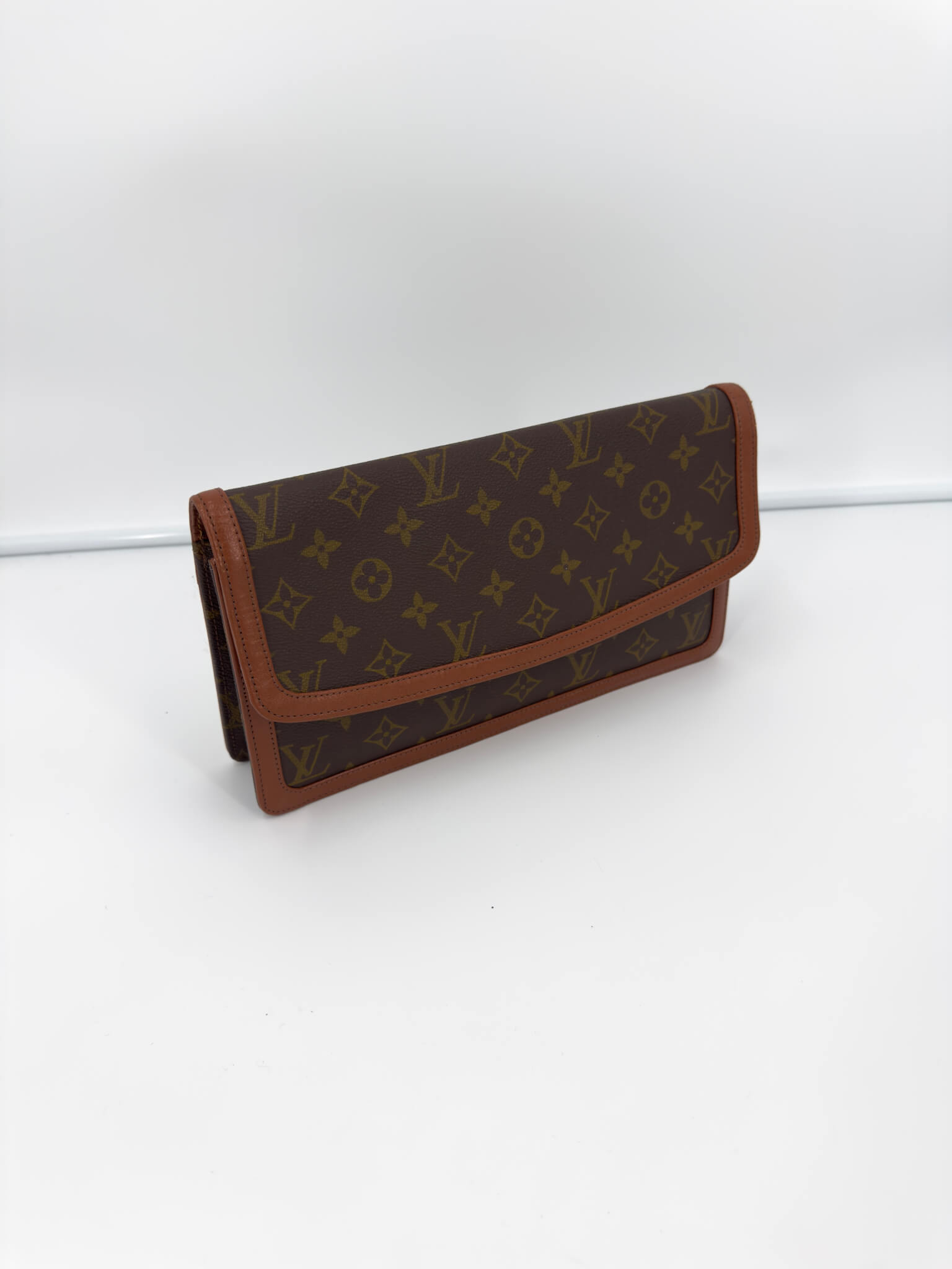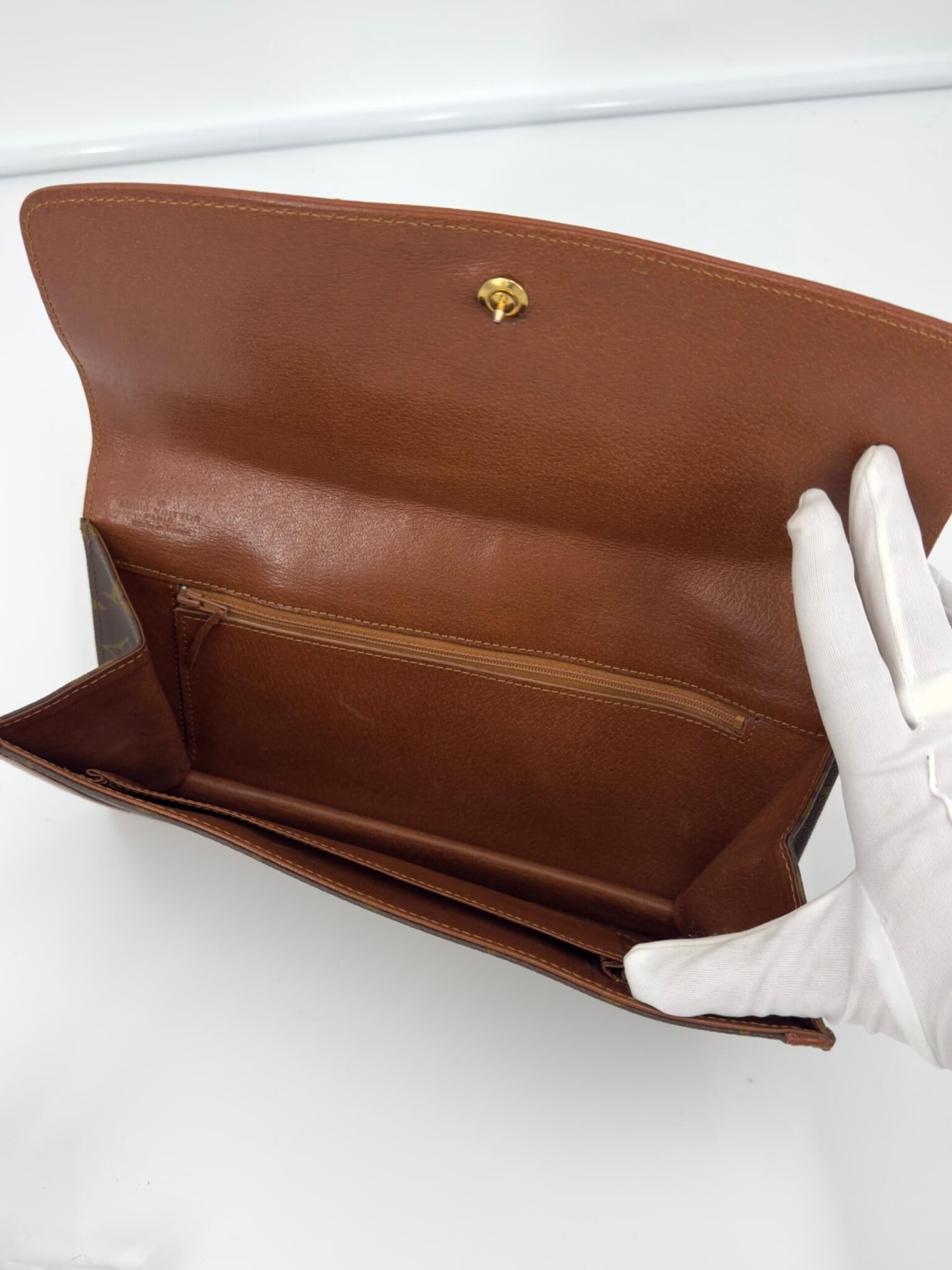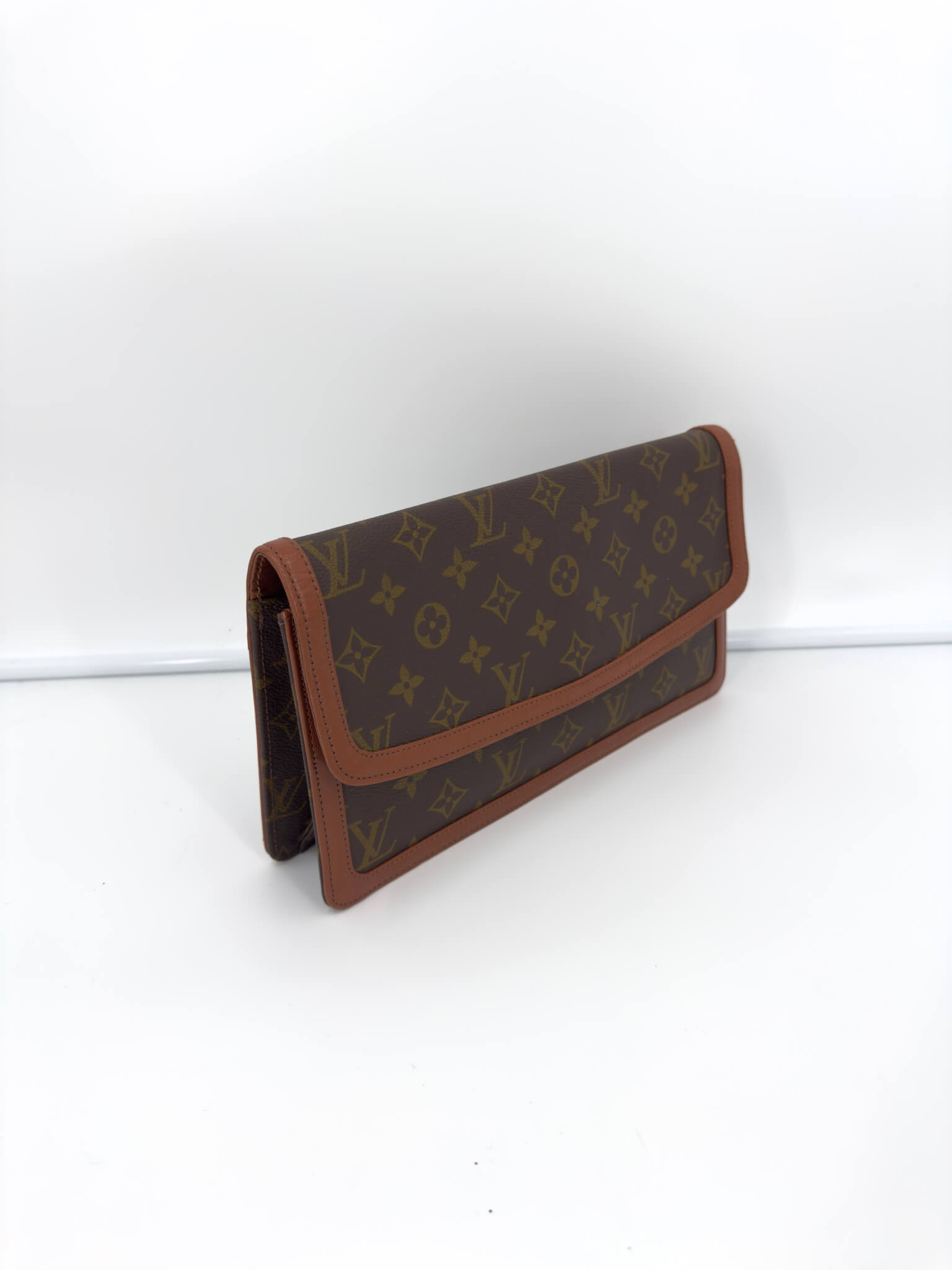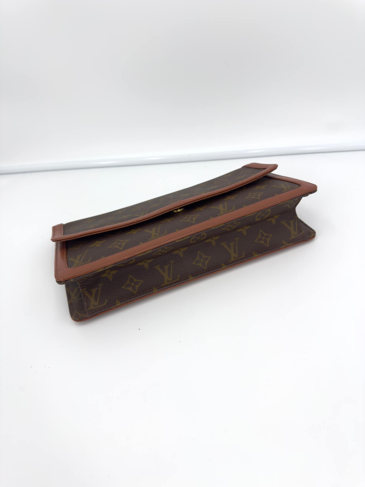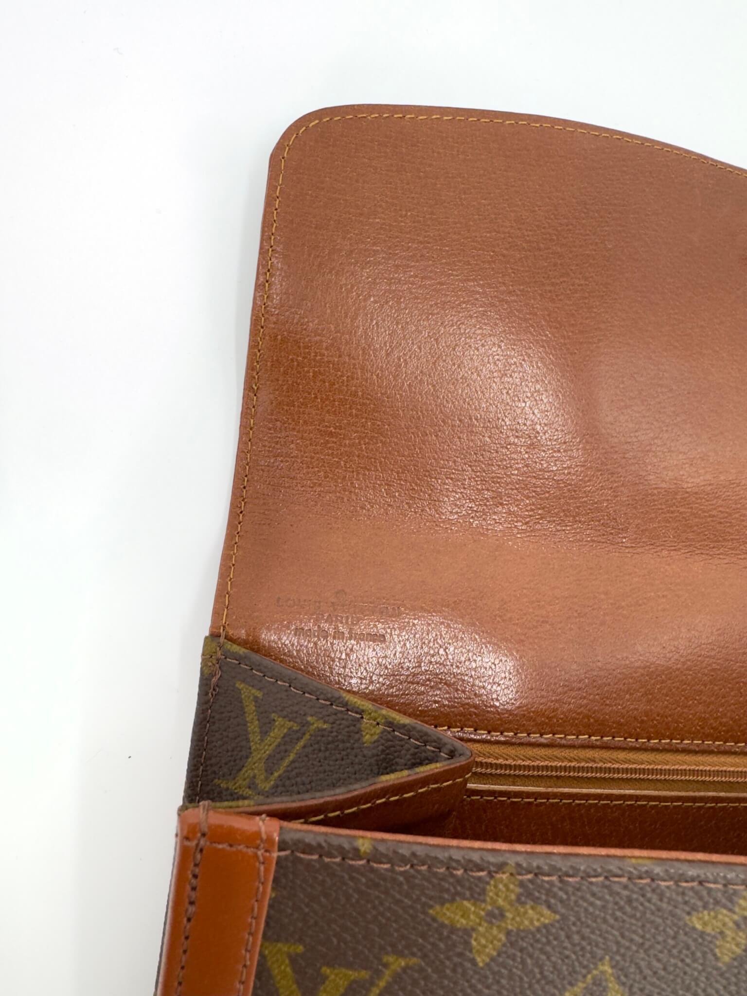 Porte-documents Louis Vuitton en toile Monogram avec liseré en cuir camel.