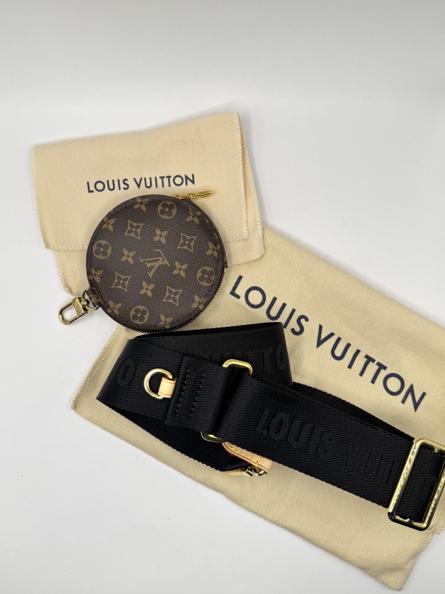 Accessoire iconique signé Louis Vuitton, cette bandoulière en toile noire est proposée avec sa pochette ronde en toile Monogram. Pratique et moderne, elle permet de personnaliser vos sacs tout en offrant un espace supplémentaire pour vos essentiels. Proposée avec son dustbag, elle est neuve sans étiquette. Prix magasin 760 €. Une pièce fonctionnelle et stylée qui apporte une touche contemporaine à vos looks.