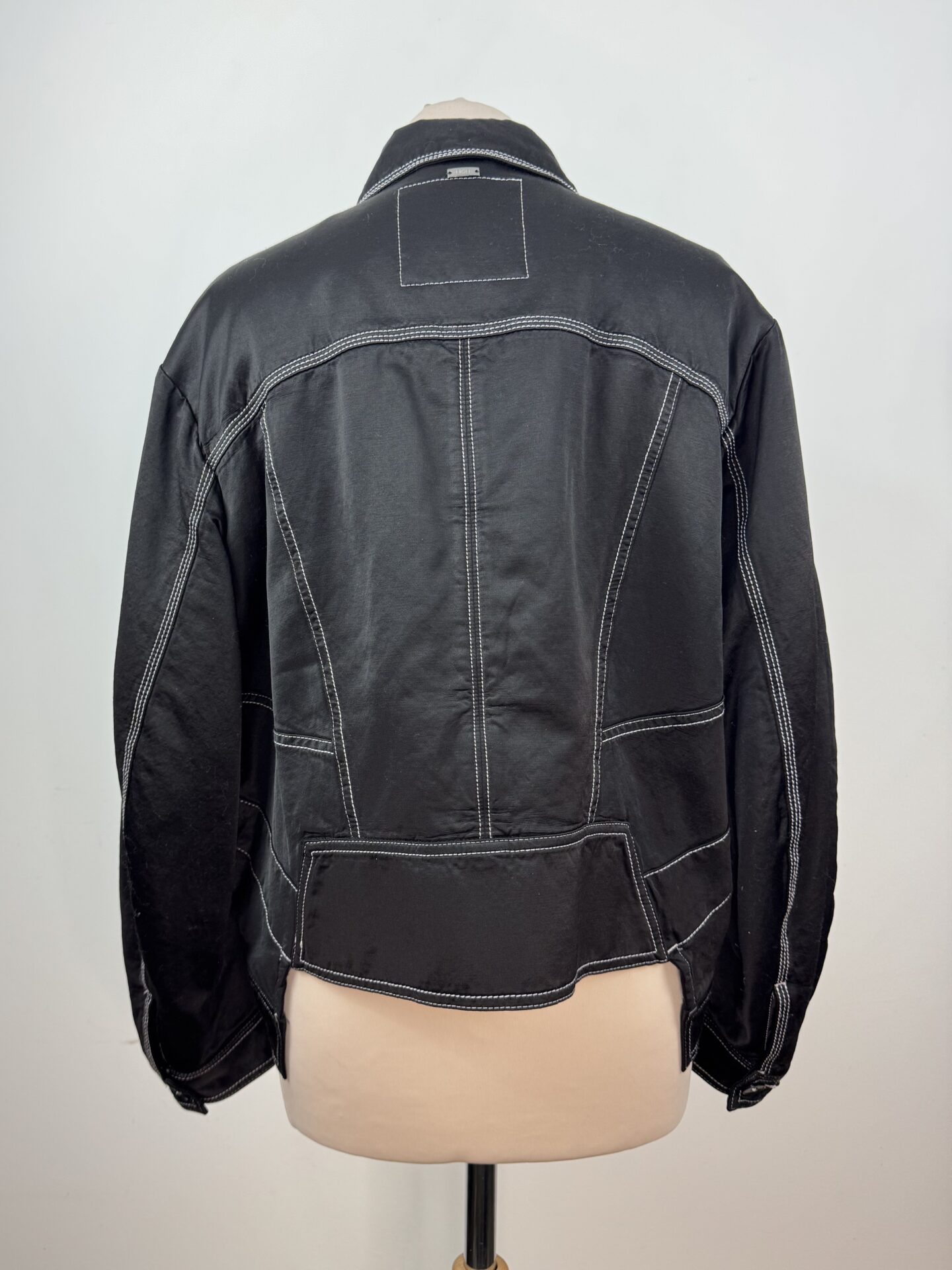 Blouson High noir à surpiqûres contrastées – Modèle court façon veste en denim, rehaussé de larges boutons et d’un jeu de coutures blanches pour un style moderne et affirmé. En coton.