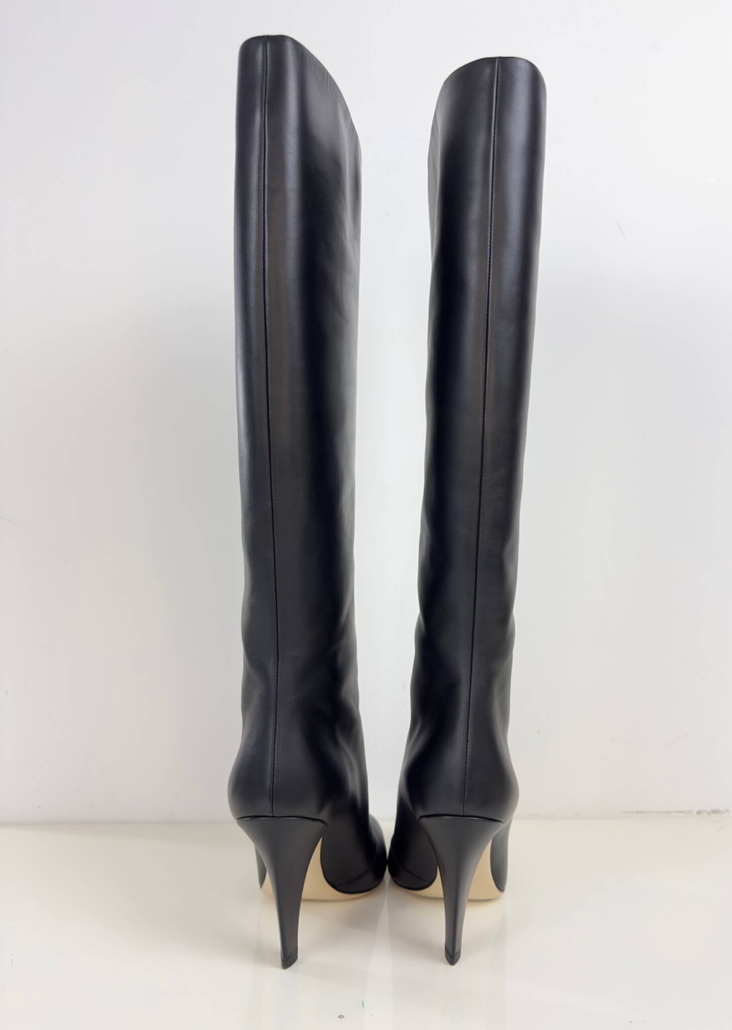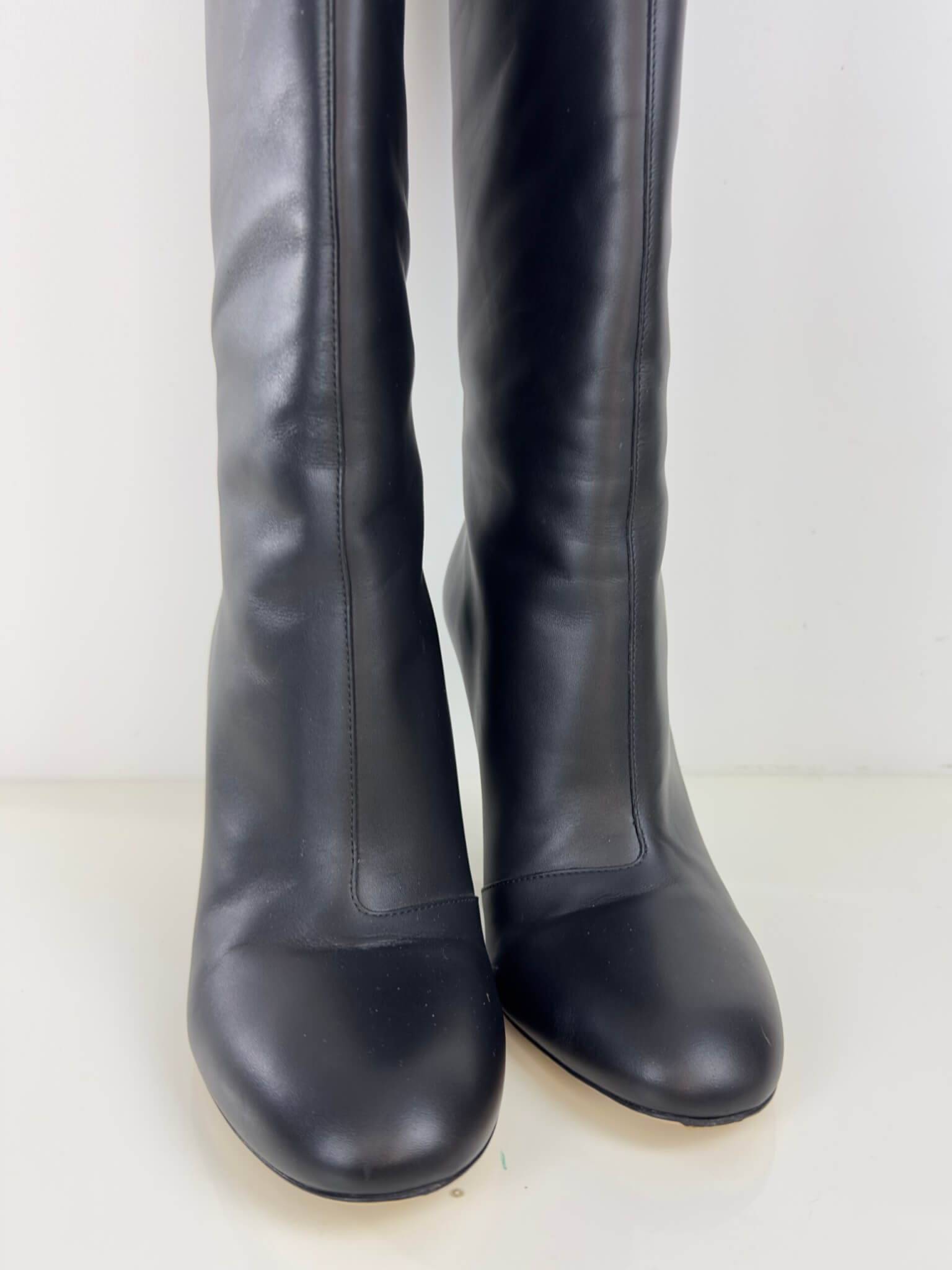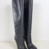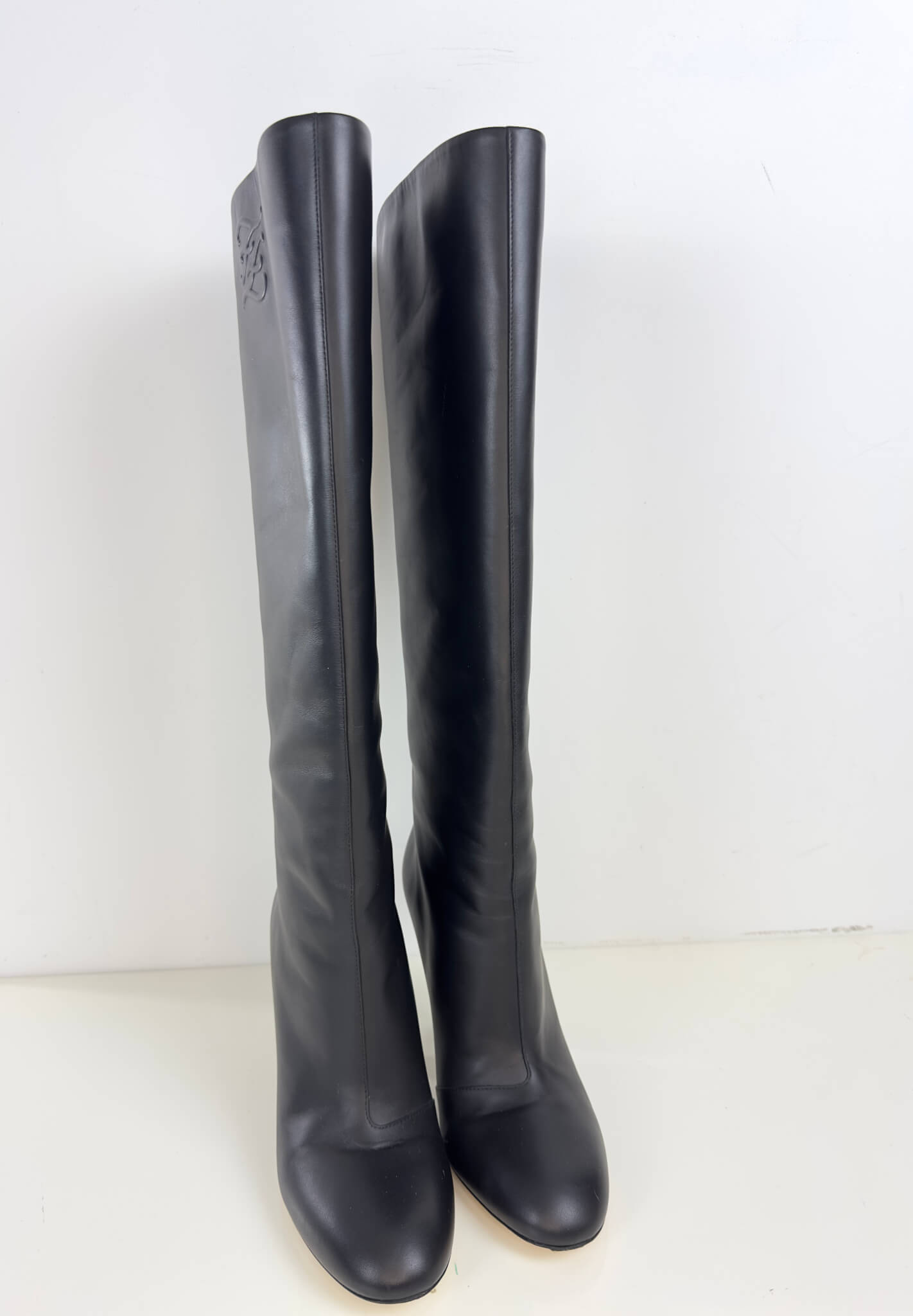 Bottes Fendi en cuir noir, logo embossé sur la tige. Modèle à talon haut et bout arrondi, élégant et intemporel. Très bon état général, vendues sans boîte mais avec dustbag d’origine.