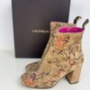 Bottines Malìparmi en velours noir brodé de motifs baroques orange et taupe, doublure fuchsia et talon carré. Très bon état, vendues avec leur boîte d’origine.