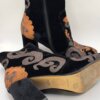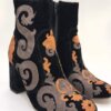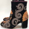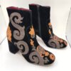 Bottines Malìparmi en velours noir brodé de motifs baroques orange et taupe