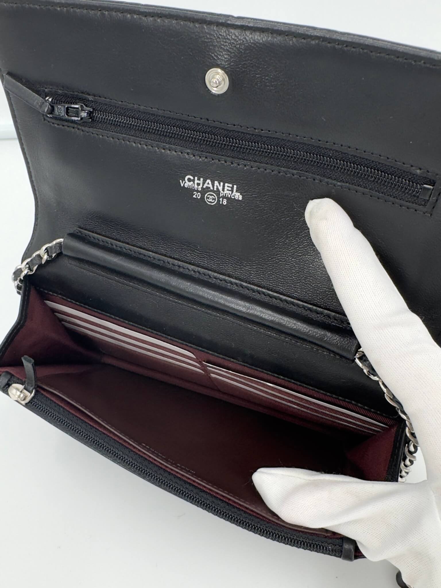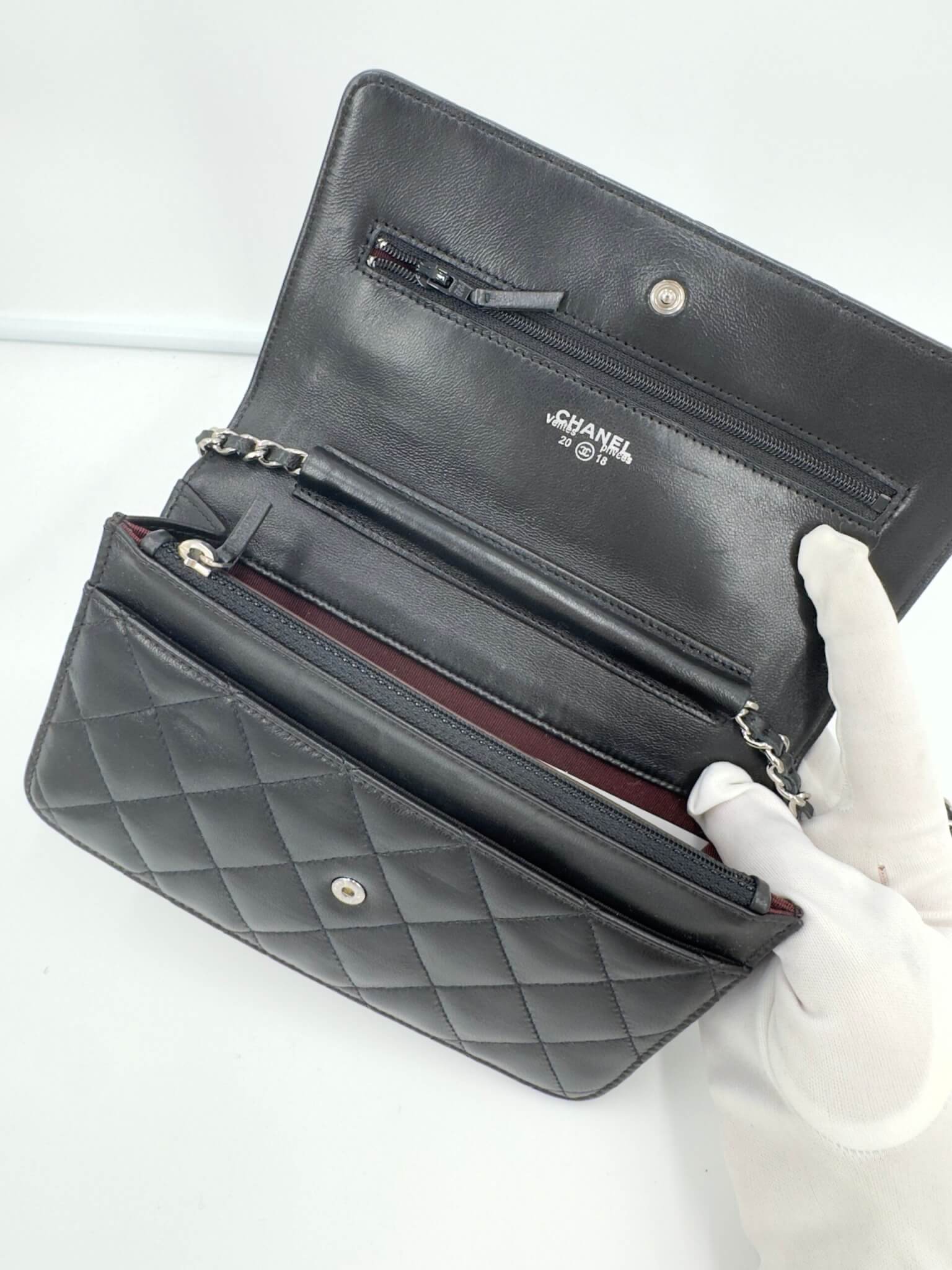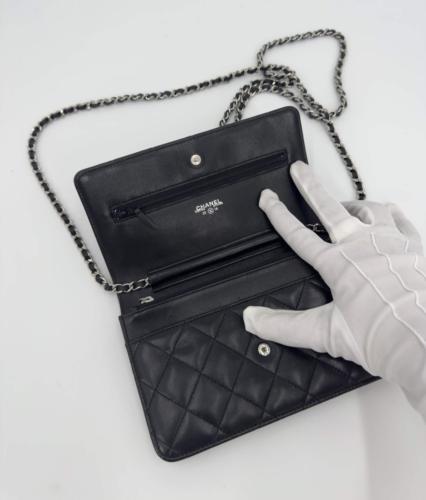 Pochette Chanel modèle Wallet on Chain noir en cuir d’agneau