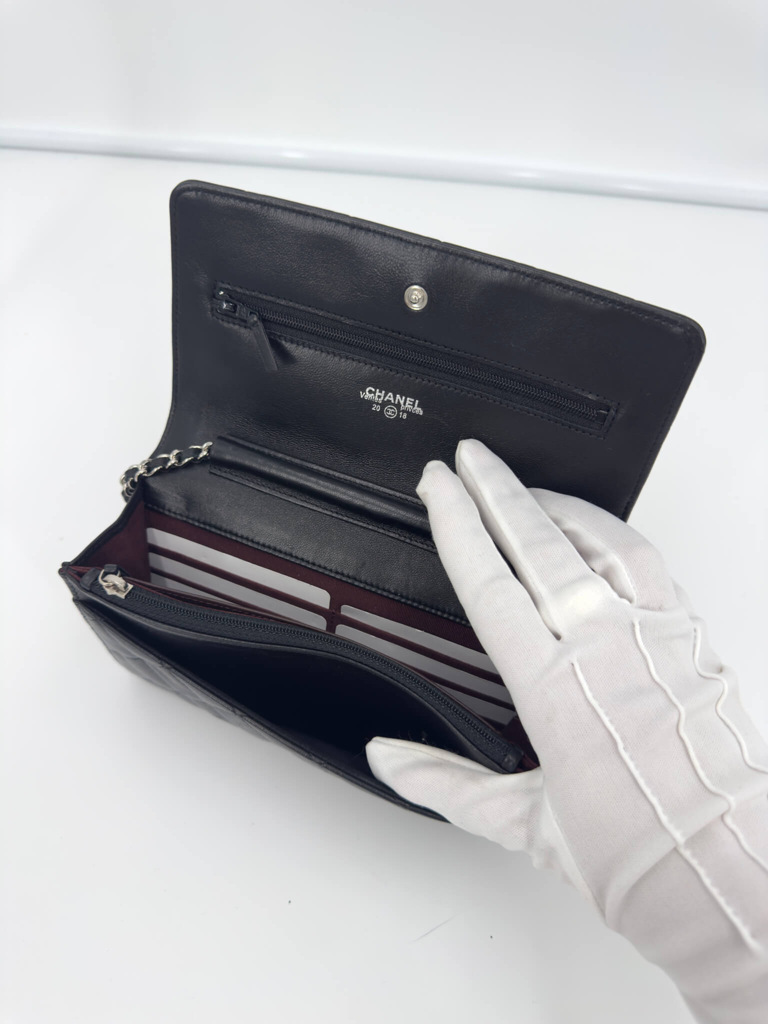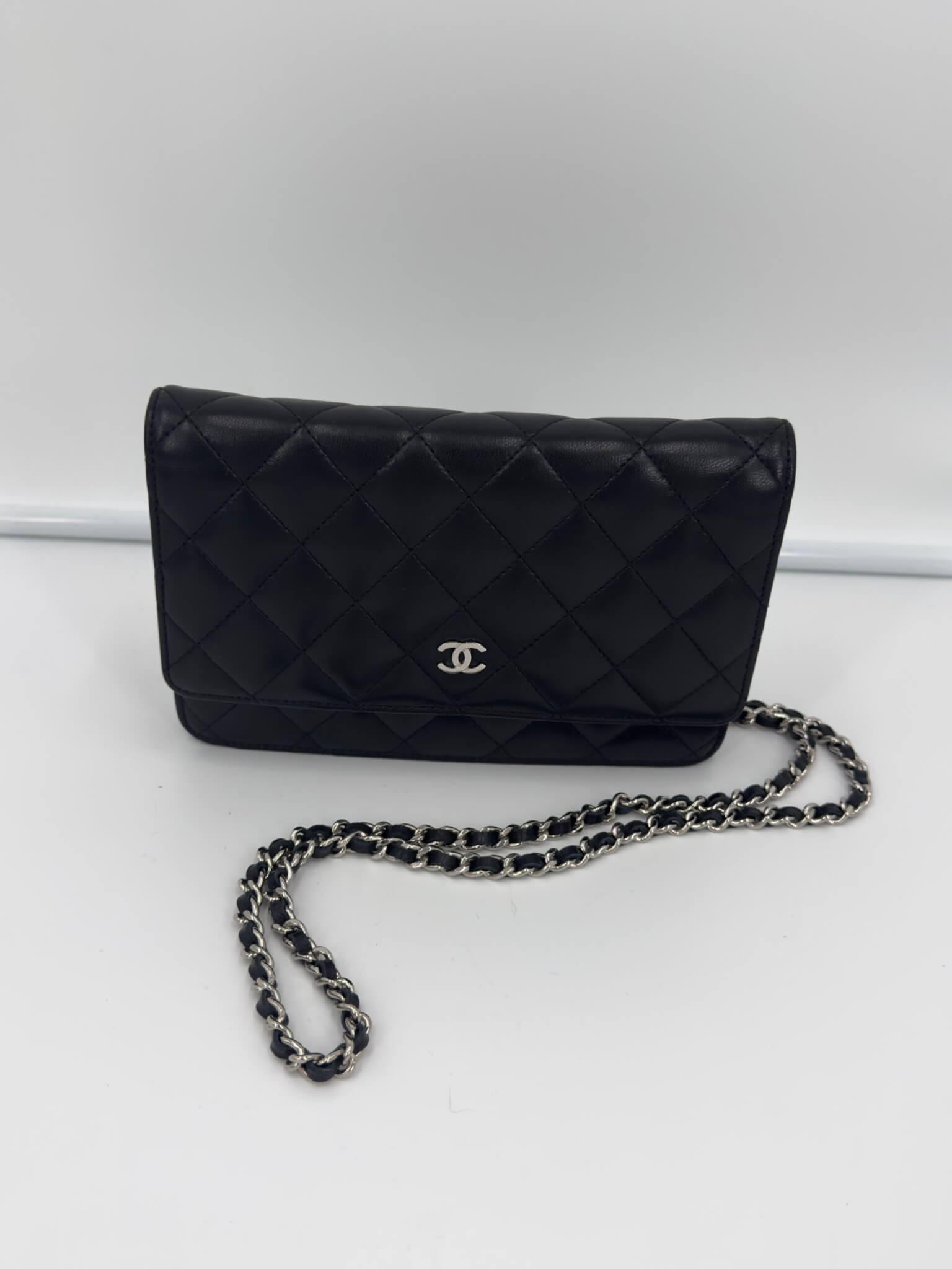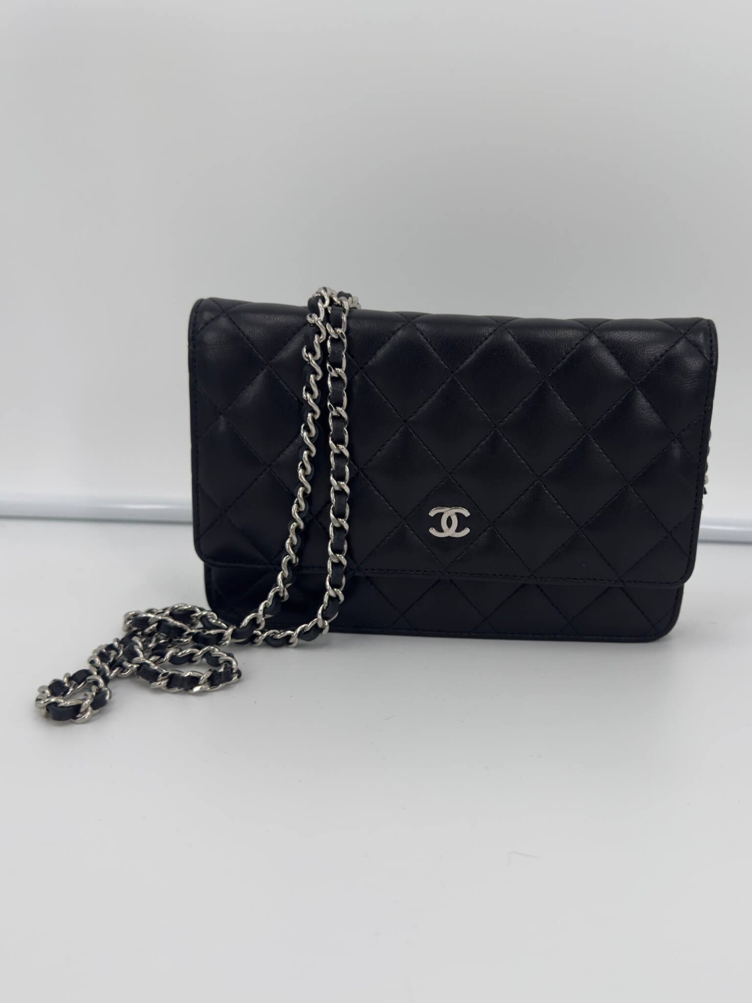 Pochette Chanel modèle Wallet on Chain noir en cuir d’agneau