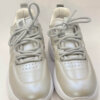 Baskets Hogan en cuir argenté, pointure 37,5. Modèle à semelle épaisse blanche, emblématique du confort et du style sportif-chic de la maison italienne. Très légères, souples et moelleuses — plus confort, tu meurs. Excellent état général, vendues sans boîte d’origine.