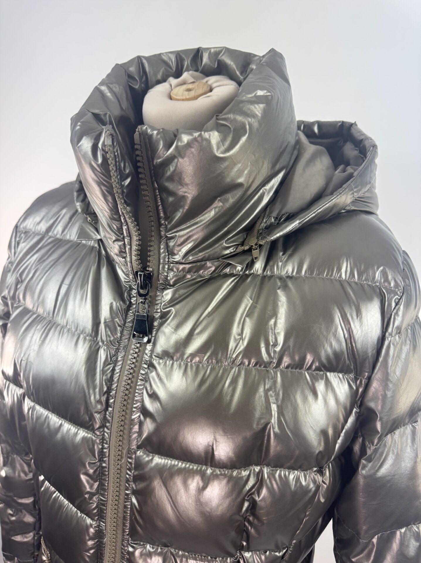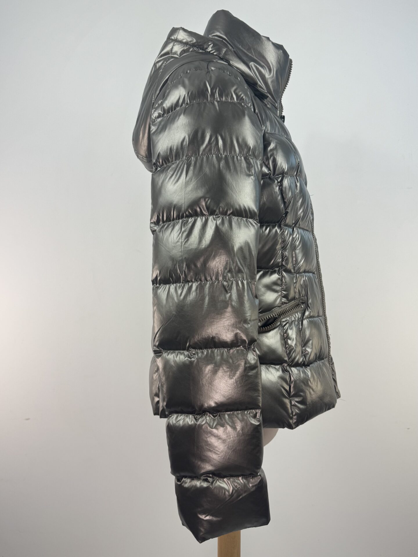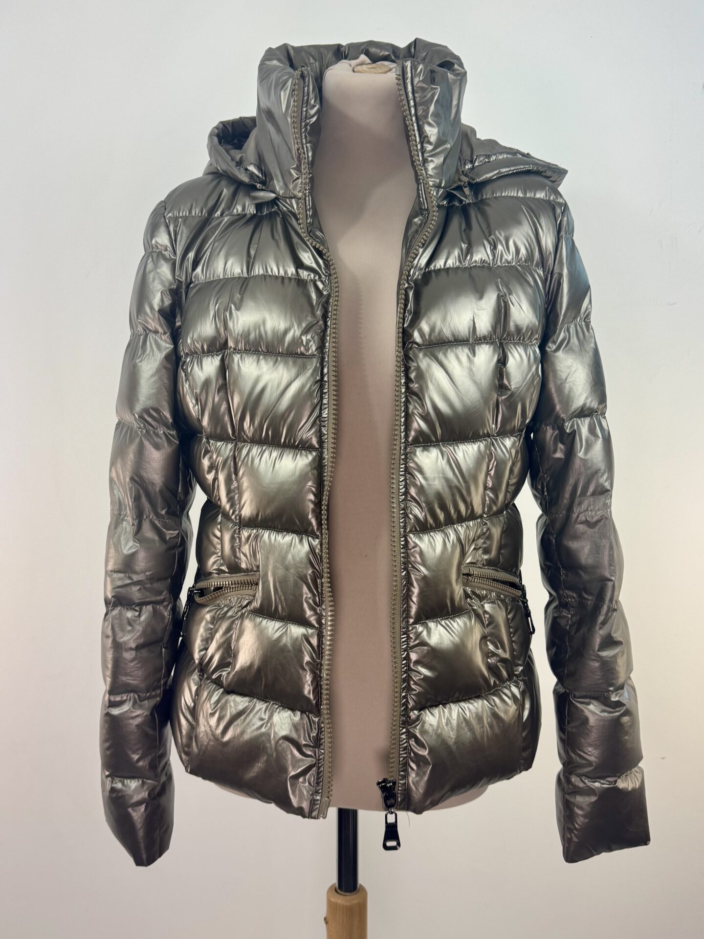 Doudoune Plein Sud doudoune matelassée en polyester garnie de duvet, coupe cintrée et capuche zippée. Modèle très chaud avec fermeture zippée double curseur et poches latérales à zip. L’étiquette d’origine est manquante et a été recousue à l’intérieur de la doublure au dos, d’où le prix attractif.