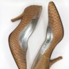 Escarpins Free Lance en python beige et camel. Bout pointu, talon fin et intérieur argenté. Une teinte chaude et subtile qui allonge la silhouette et s’accorde aussi bien avec un jean qu’une robe fluide. Avec boîte Free Lance. Une paire lumineuse et intemporelle qui réveille les tons neutres avec une touche de caractère discret.