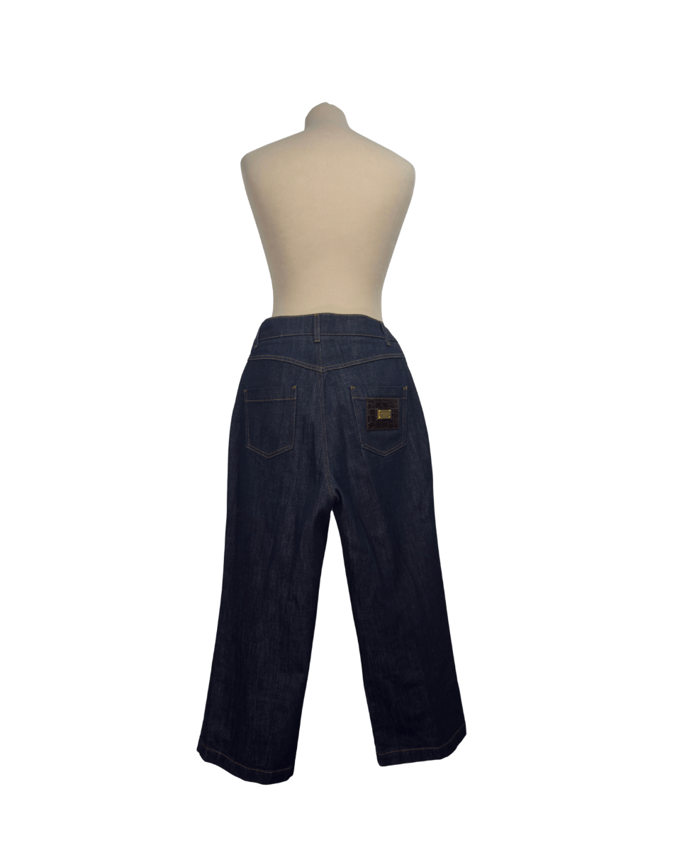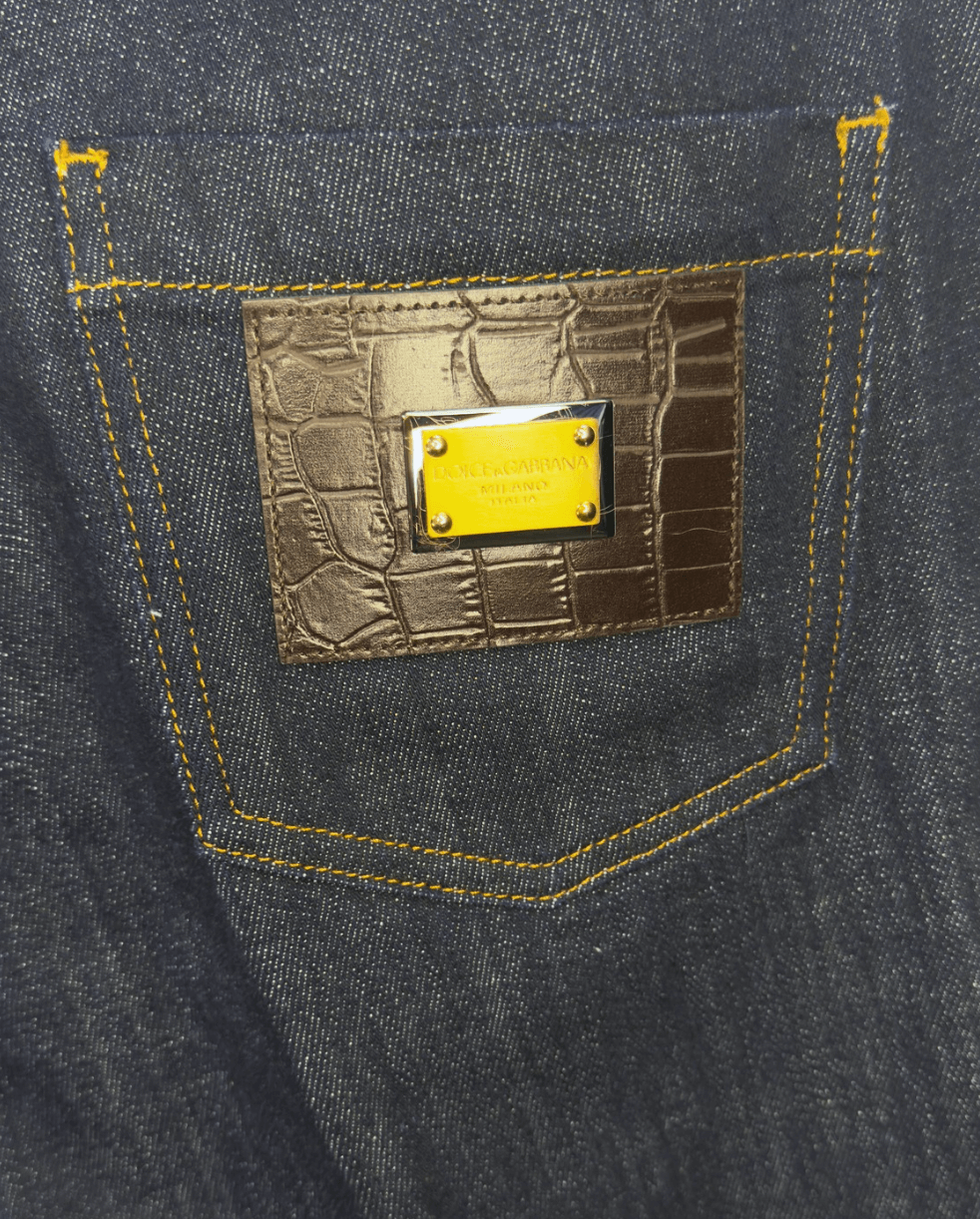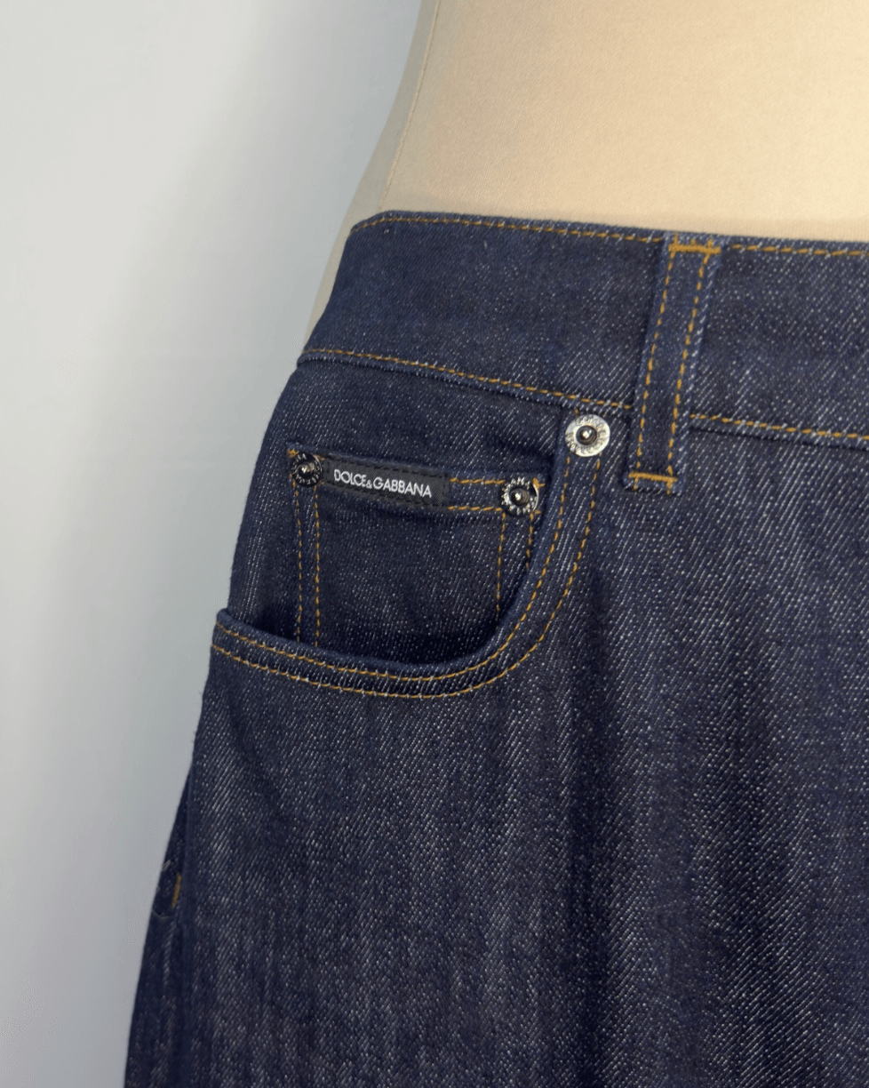 Jean Dolce & Gabbana en denim brut, taille haute et coupe droite.