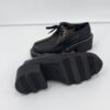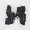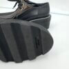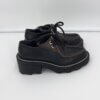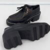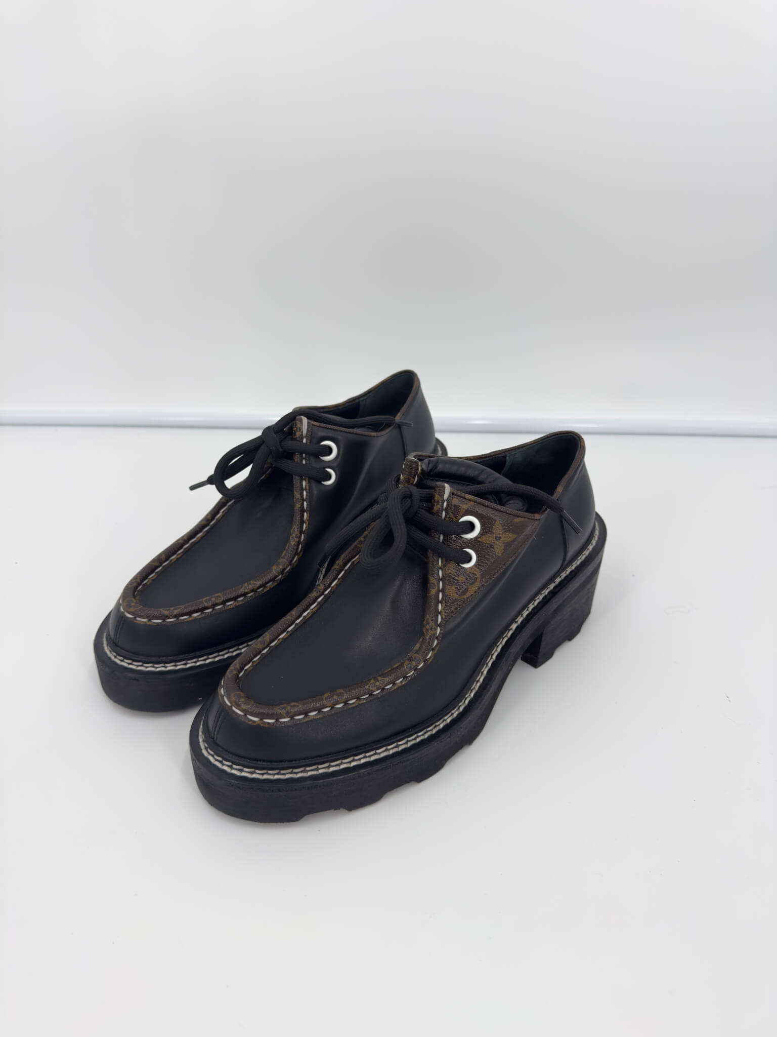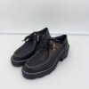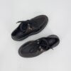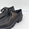 Lacets noirs, couture contrastée, silhouette inspirée du mocassin revisité.