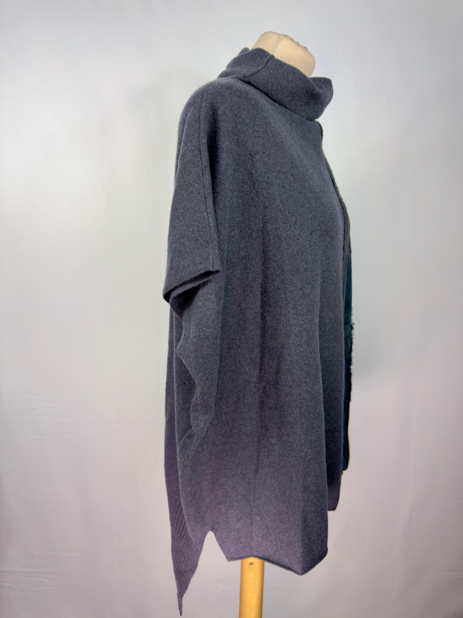 Poncho Fabiana Filippi en maille grise, silhouette fluide et manches courtes.