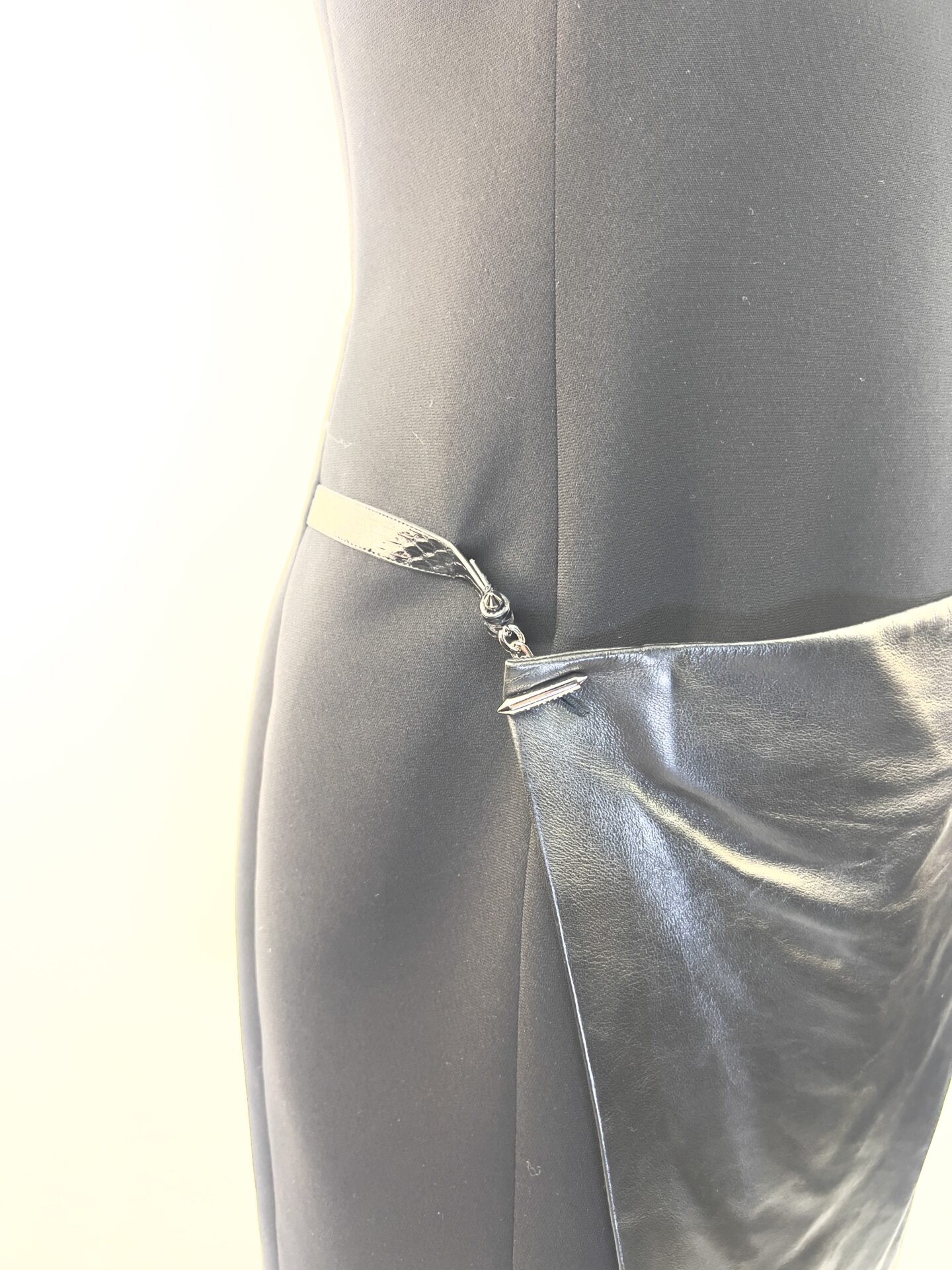 Une robe singulière qui joue sur les contrastes de matières, parfaite pour un look de soirée sophistiqué.