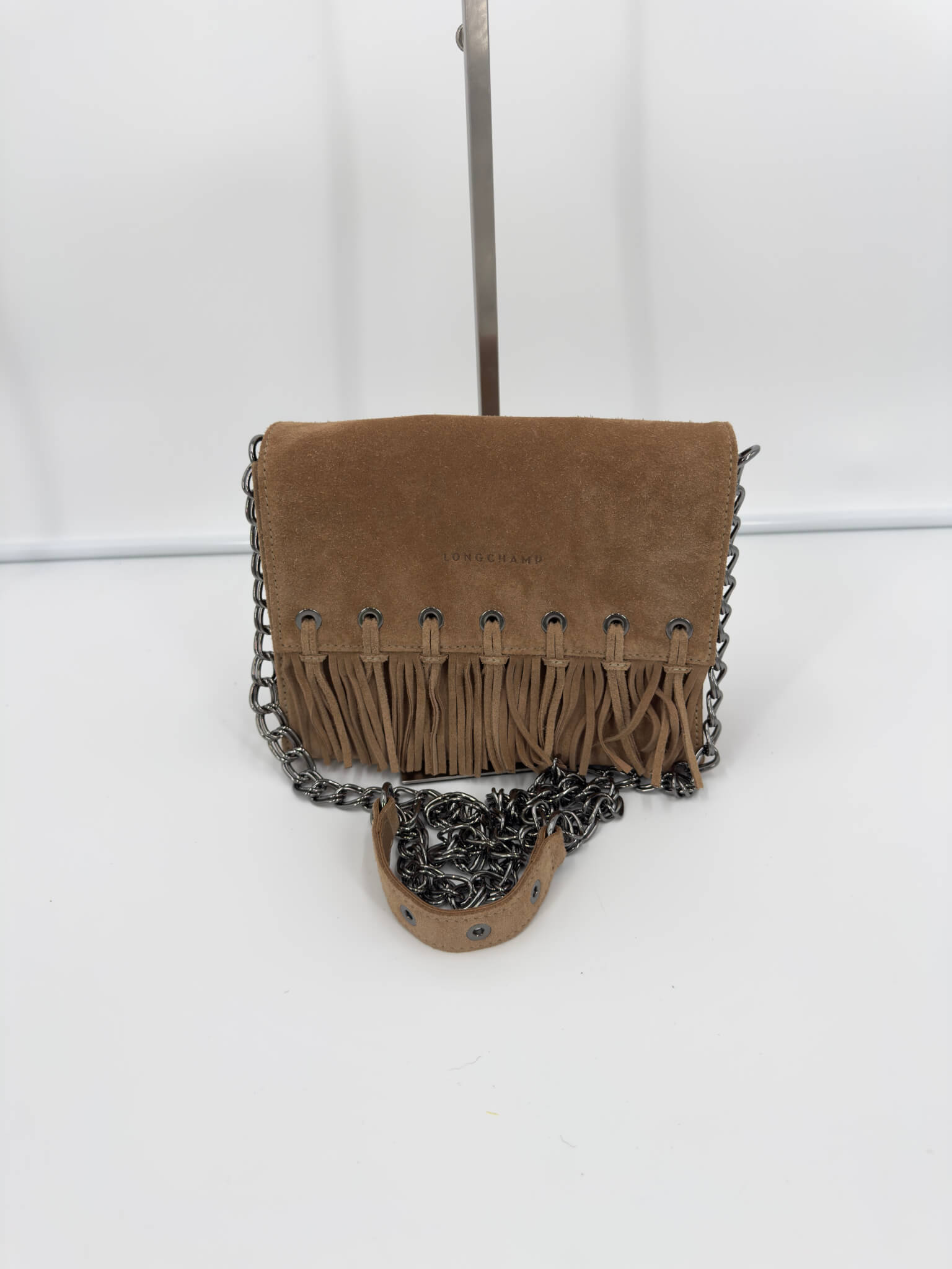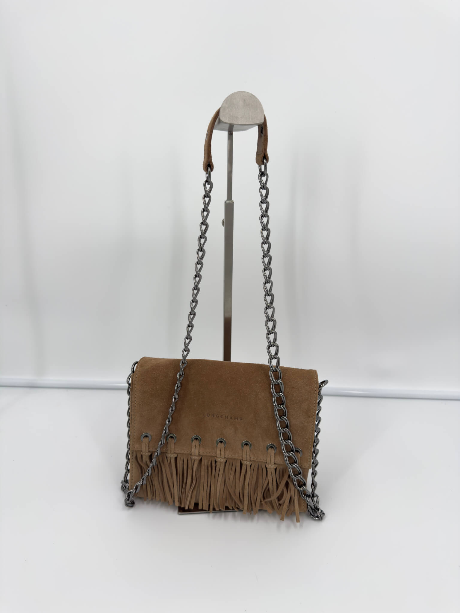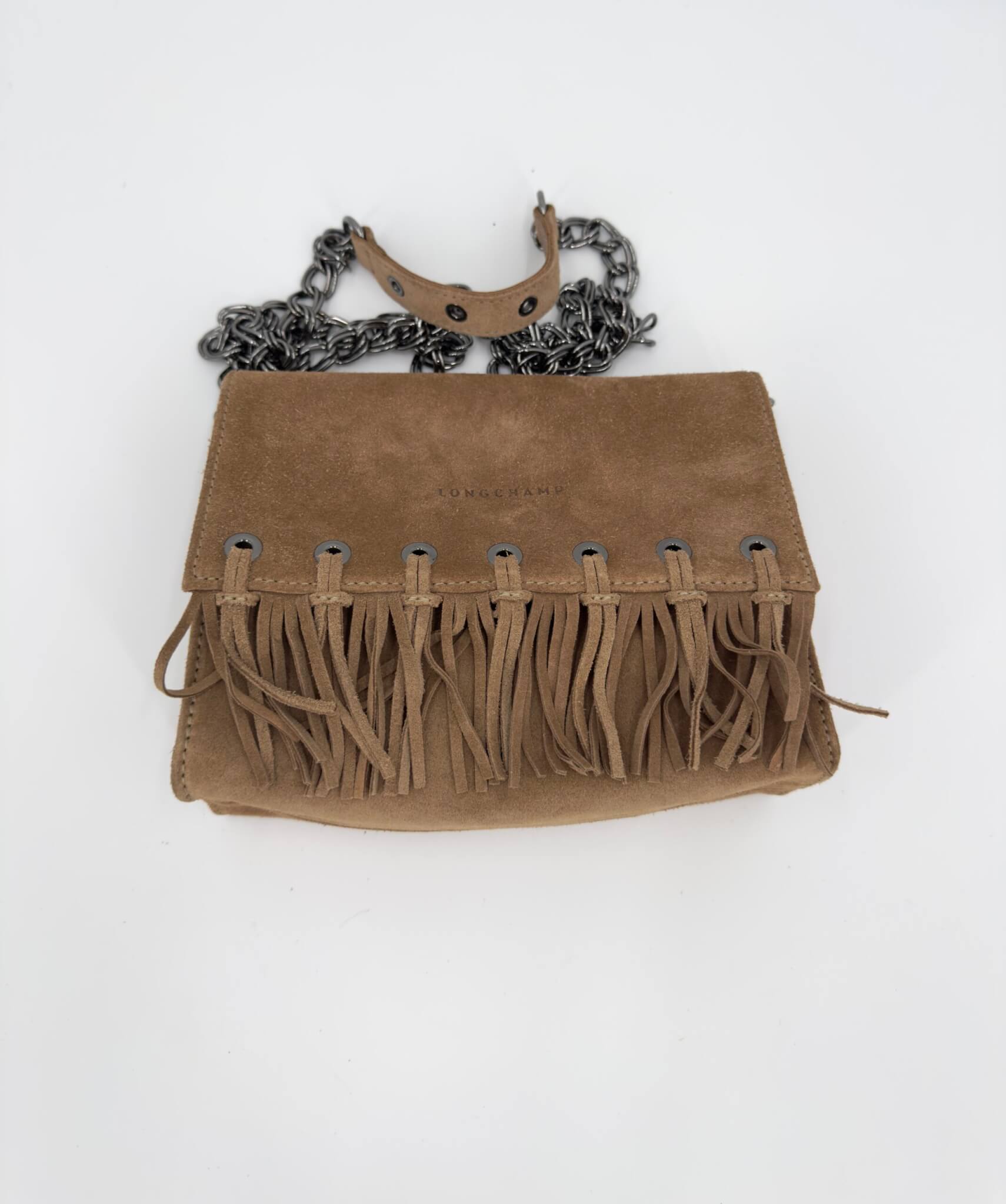 Sac Longchamp en daim camel à franges, modèle Rocks Folk.