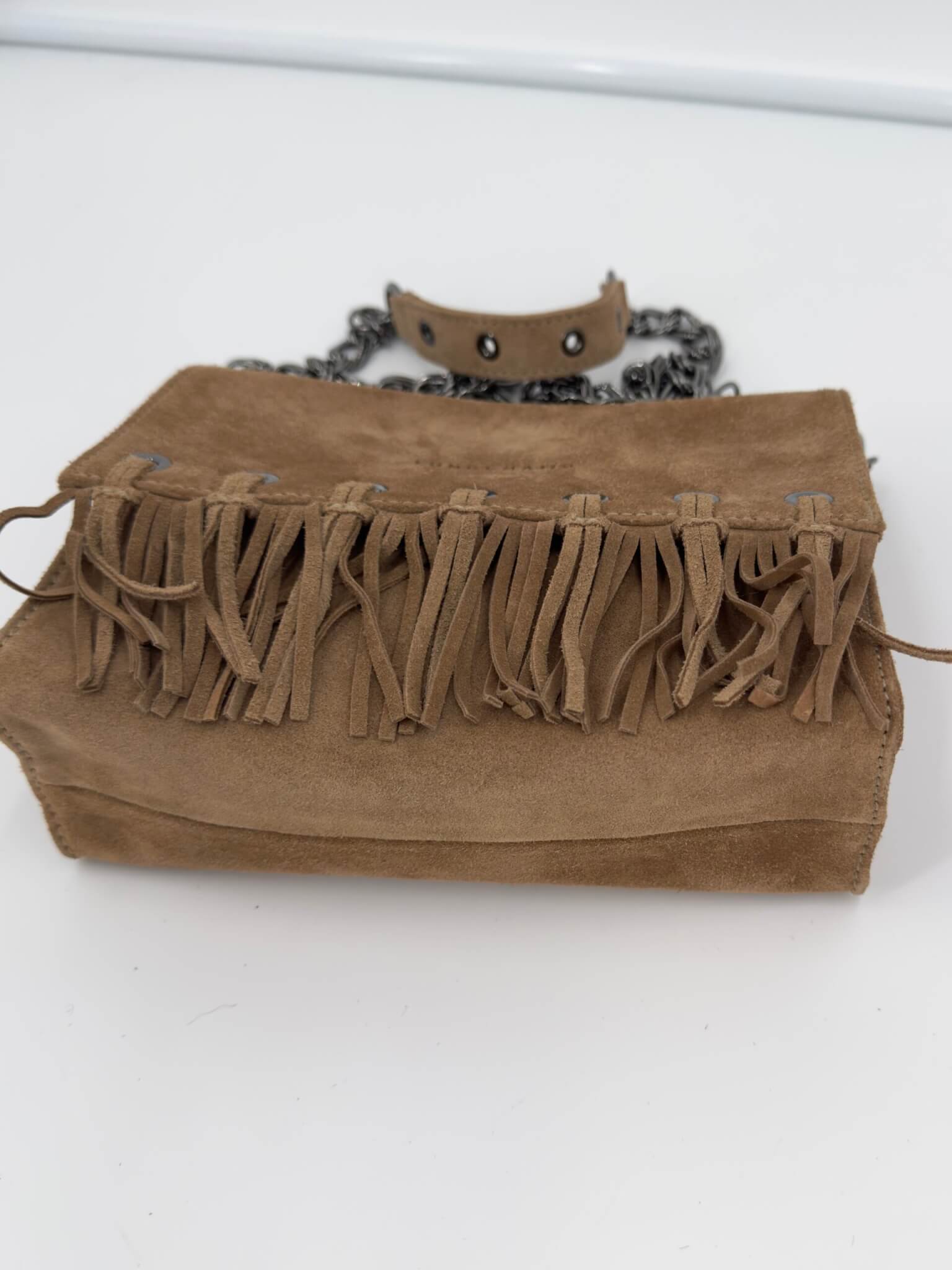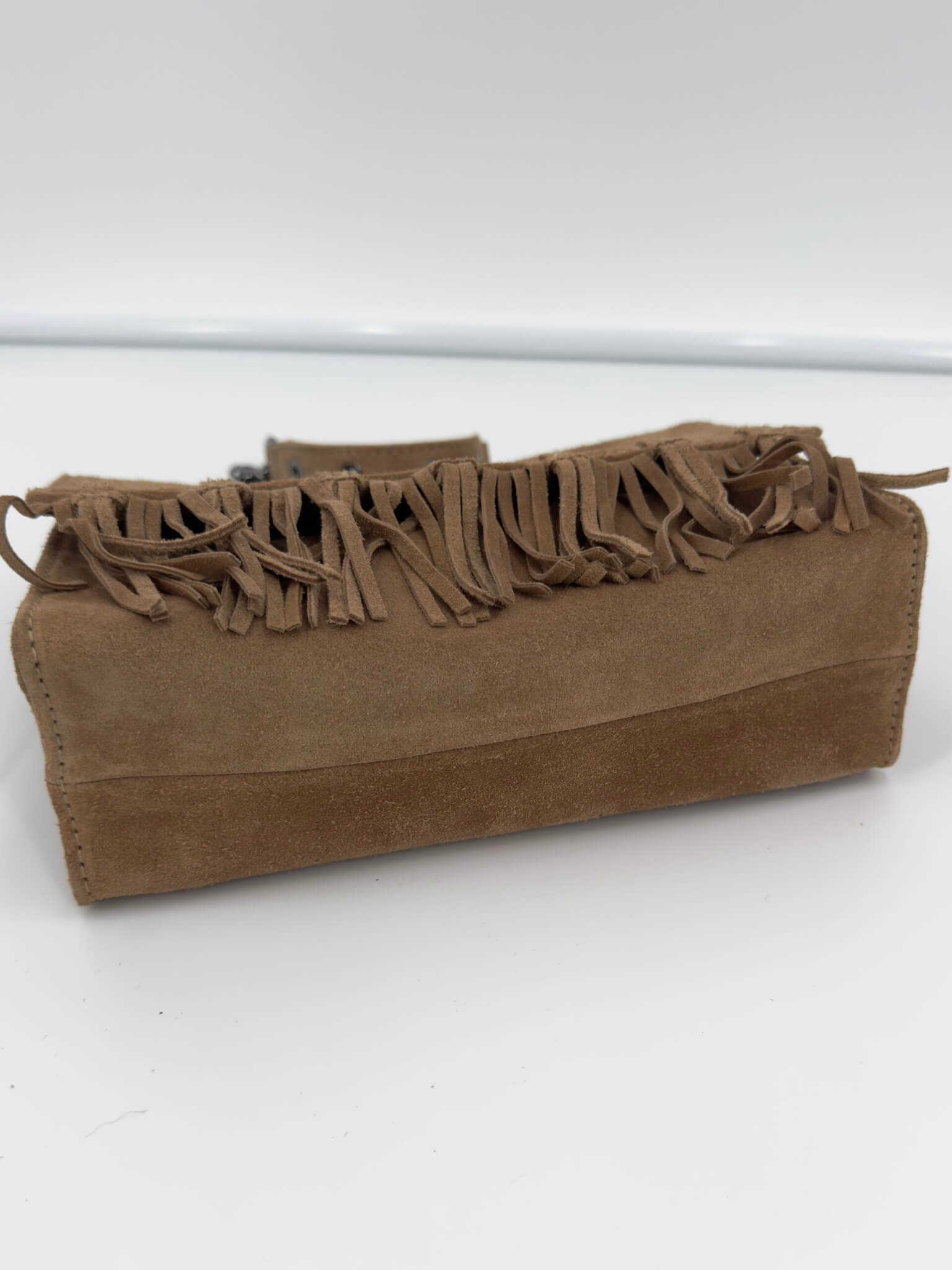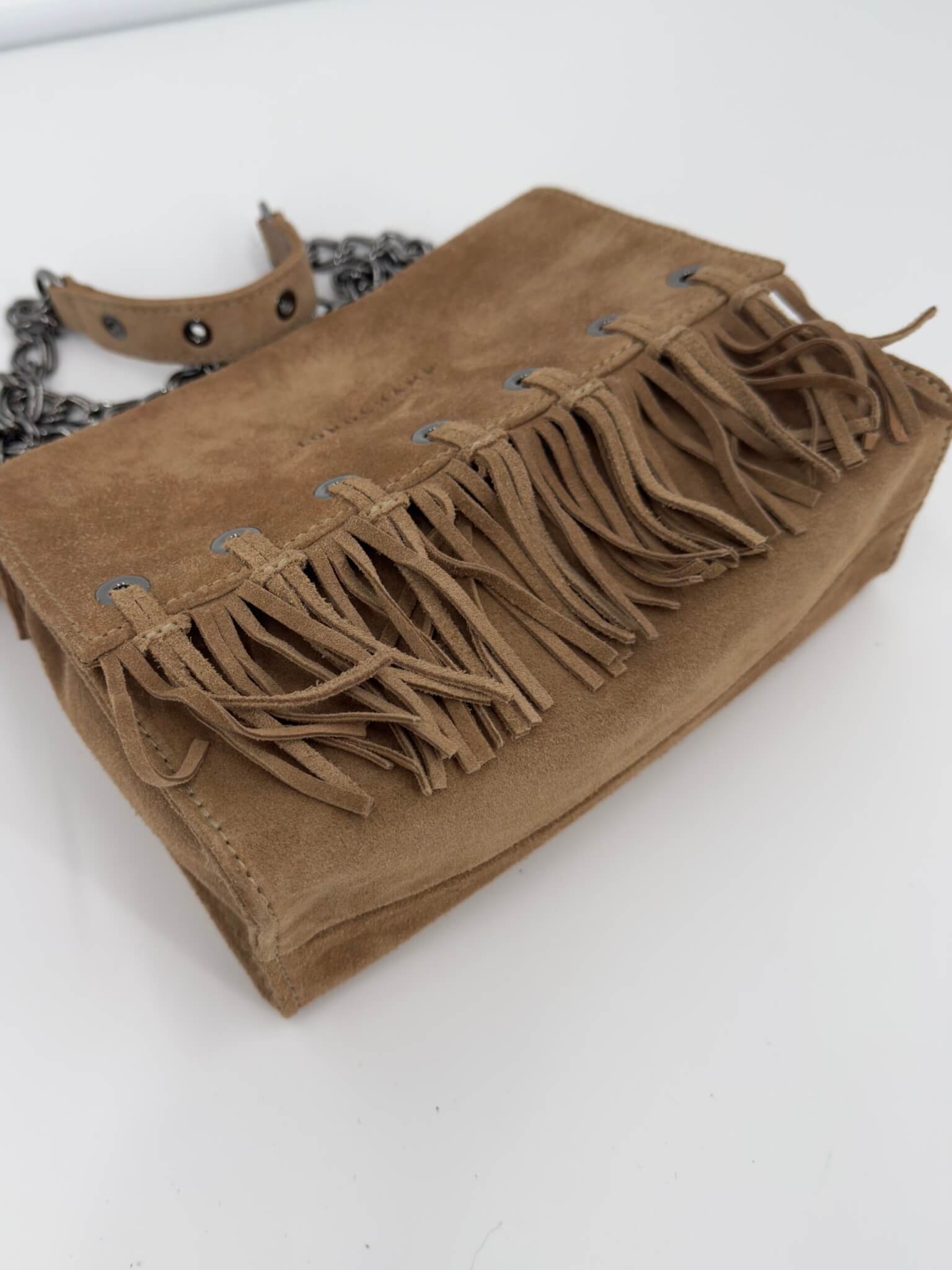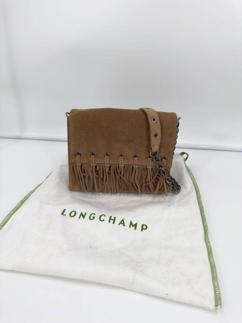 Sac Longchamp en daim camel à franges, modèle Rocks Folk.