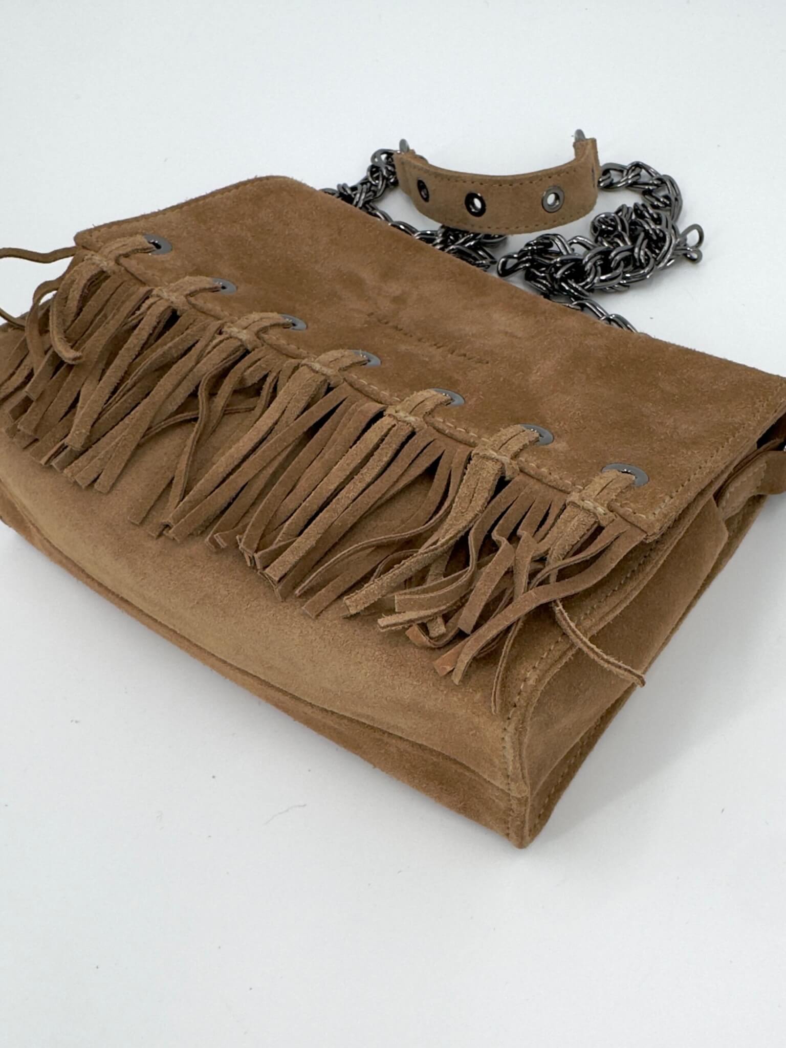 Franges iconiques et bandoulière chaîne pour un porté épaule ou croisé.