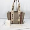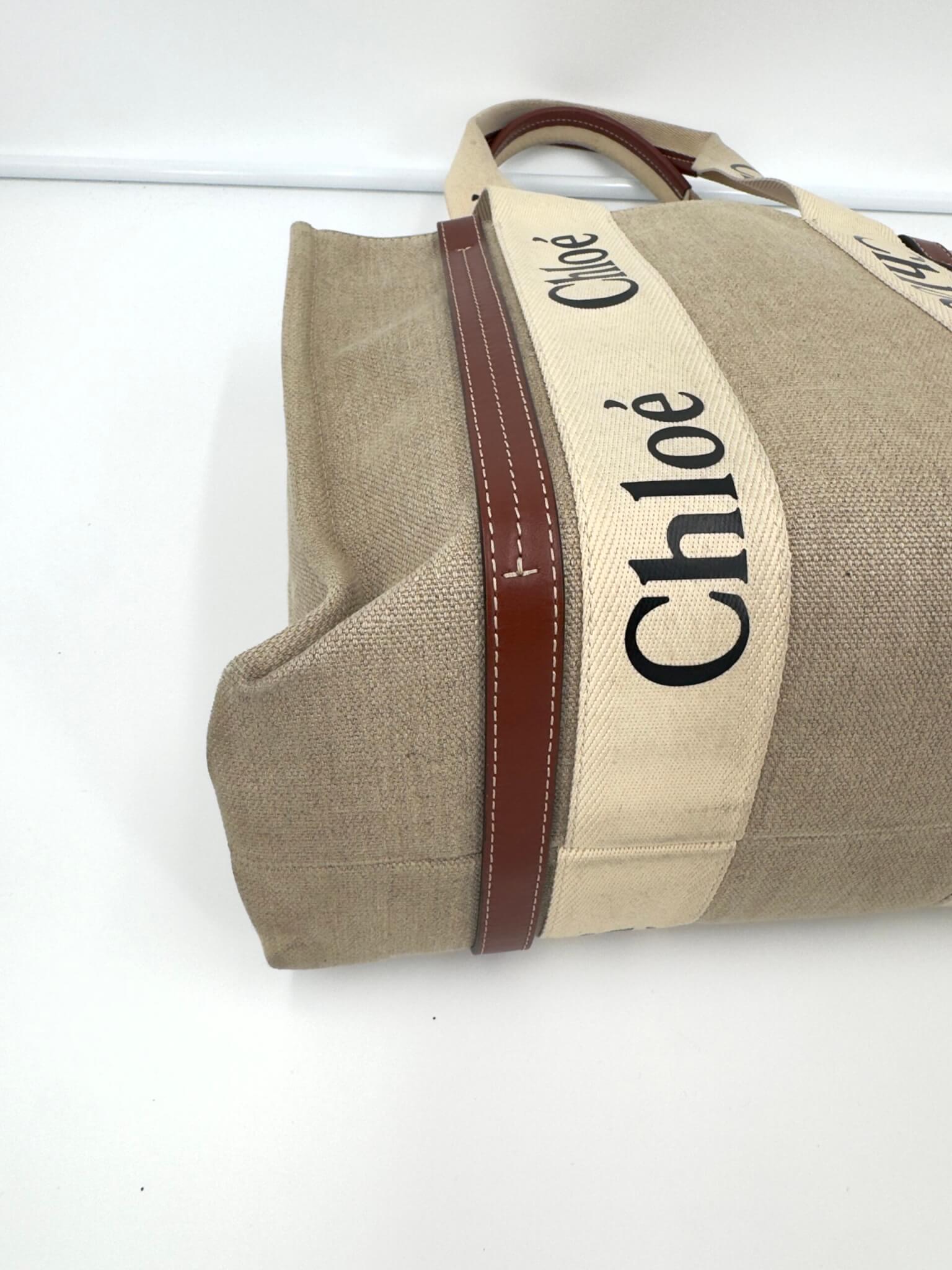 Sac cabas Chloé Woody en toile beige.