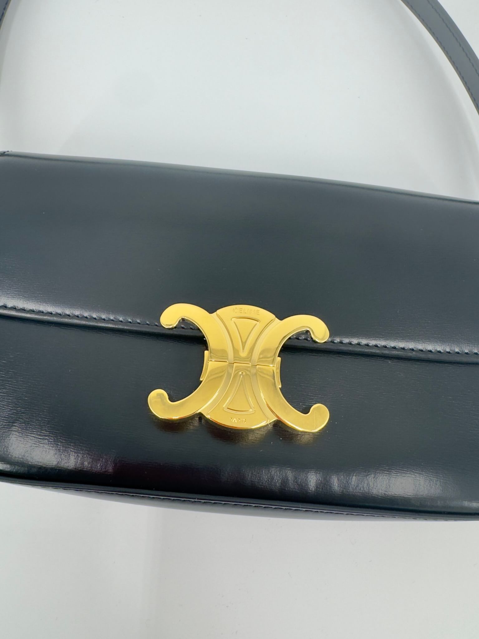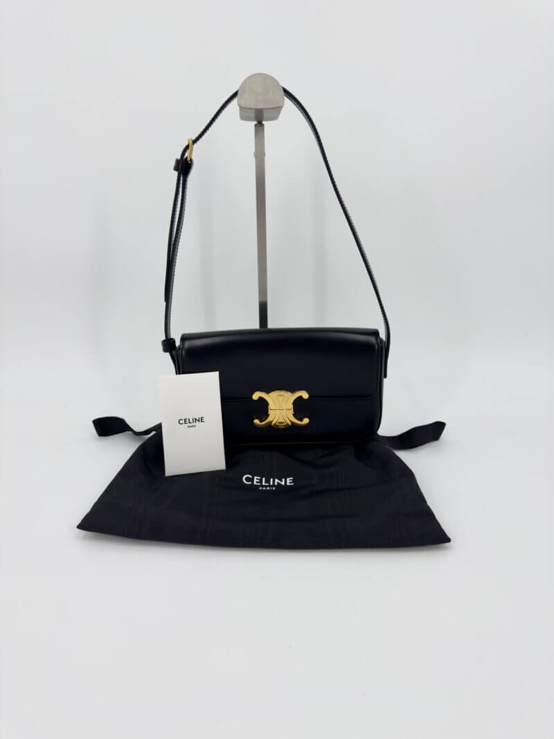 Sac Celine porté épaule modèle Claude Triomphe classique en veau noir