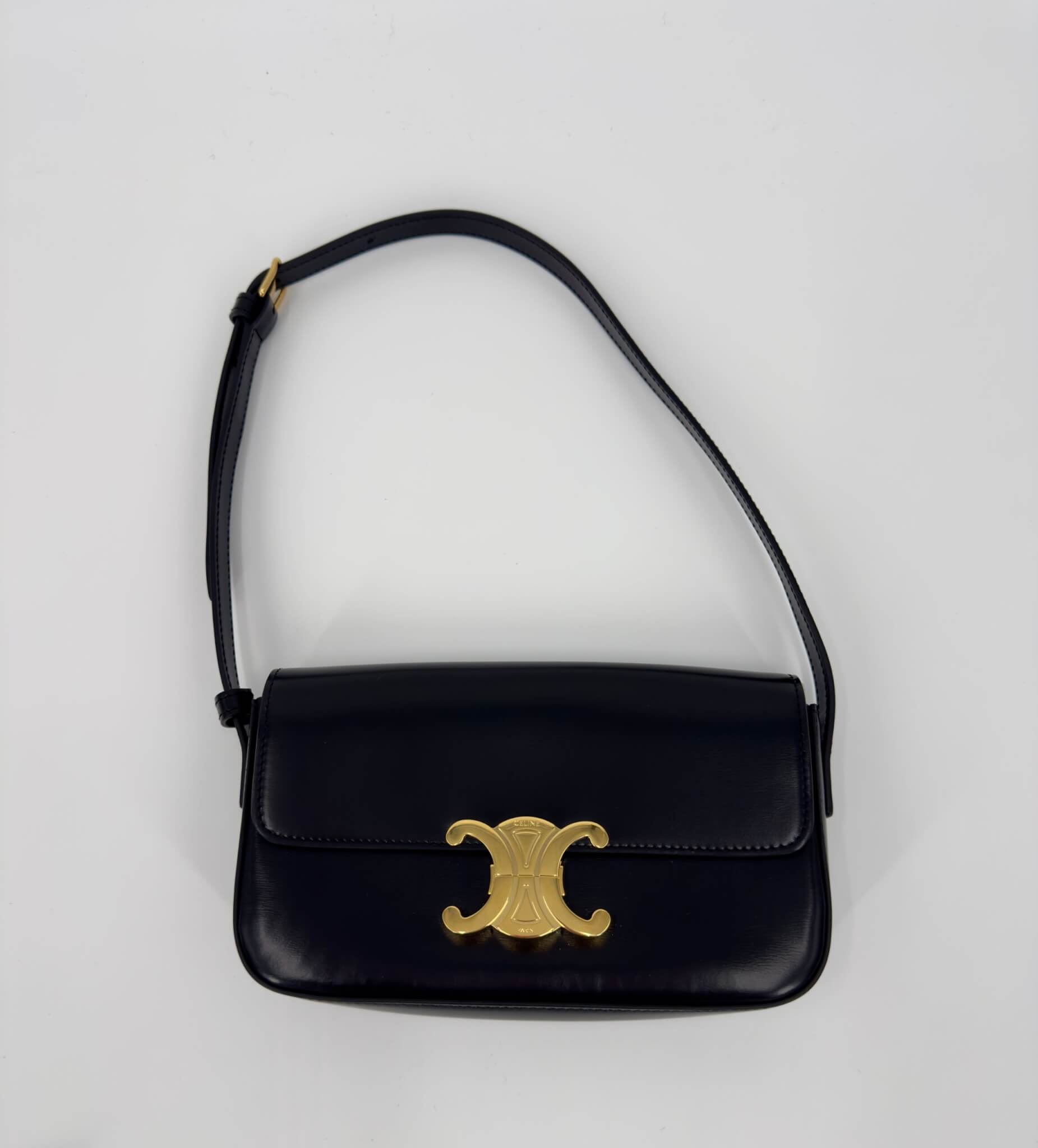 Sac Celine porté épaule modèle Claude Triomphe classique en veau noir.