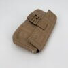 Fermeture à rabat avec bouton aimanté et plaque argentée encore protégée par son blister.