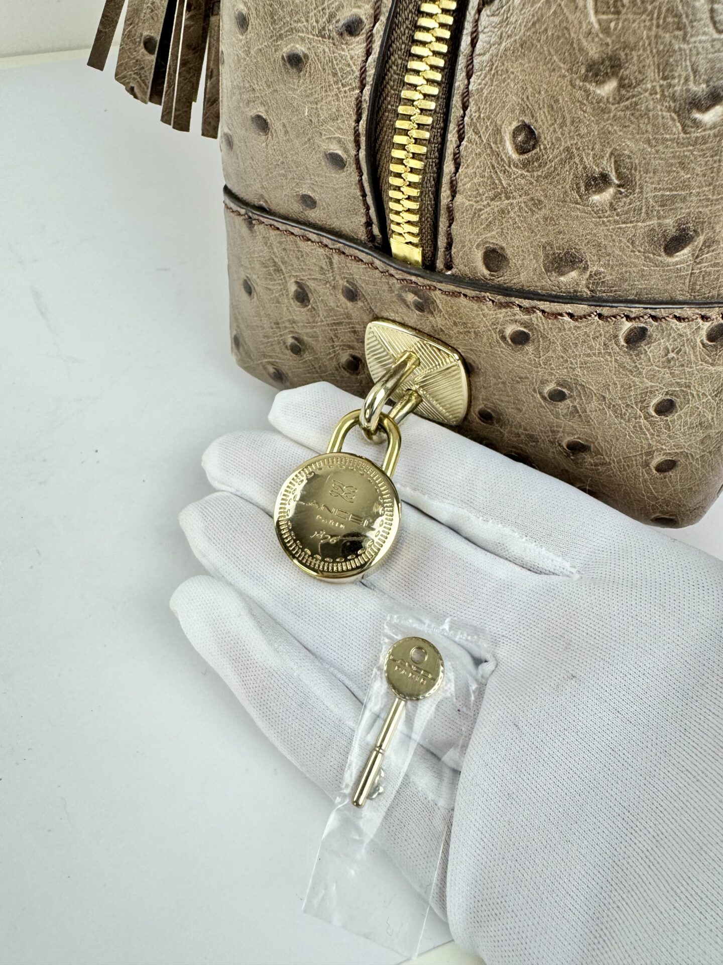 Sac Adjani de Lancel en cuir d’autruche véritable, un modèle d’exception emblématique de la maison.