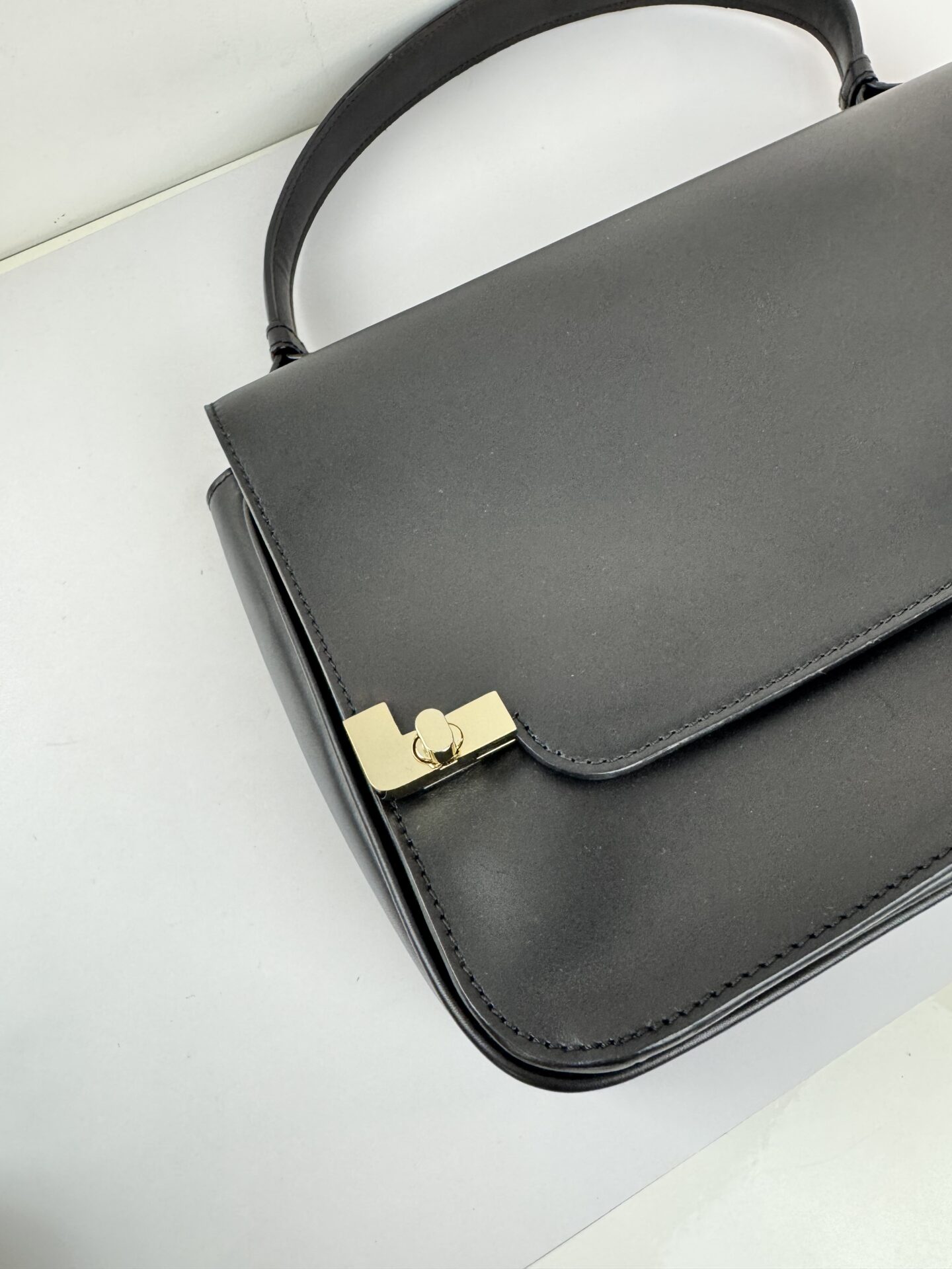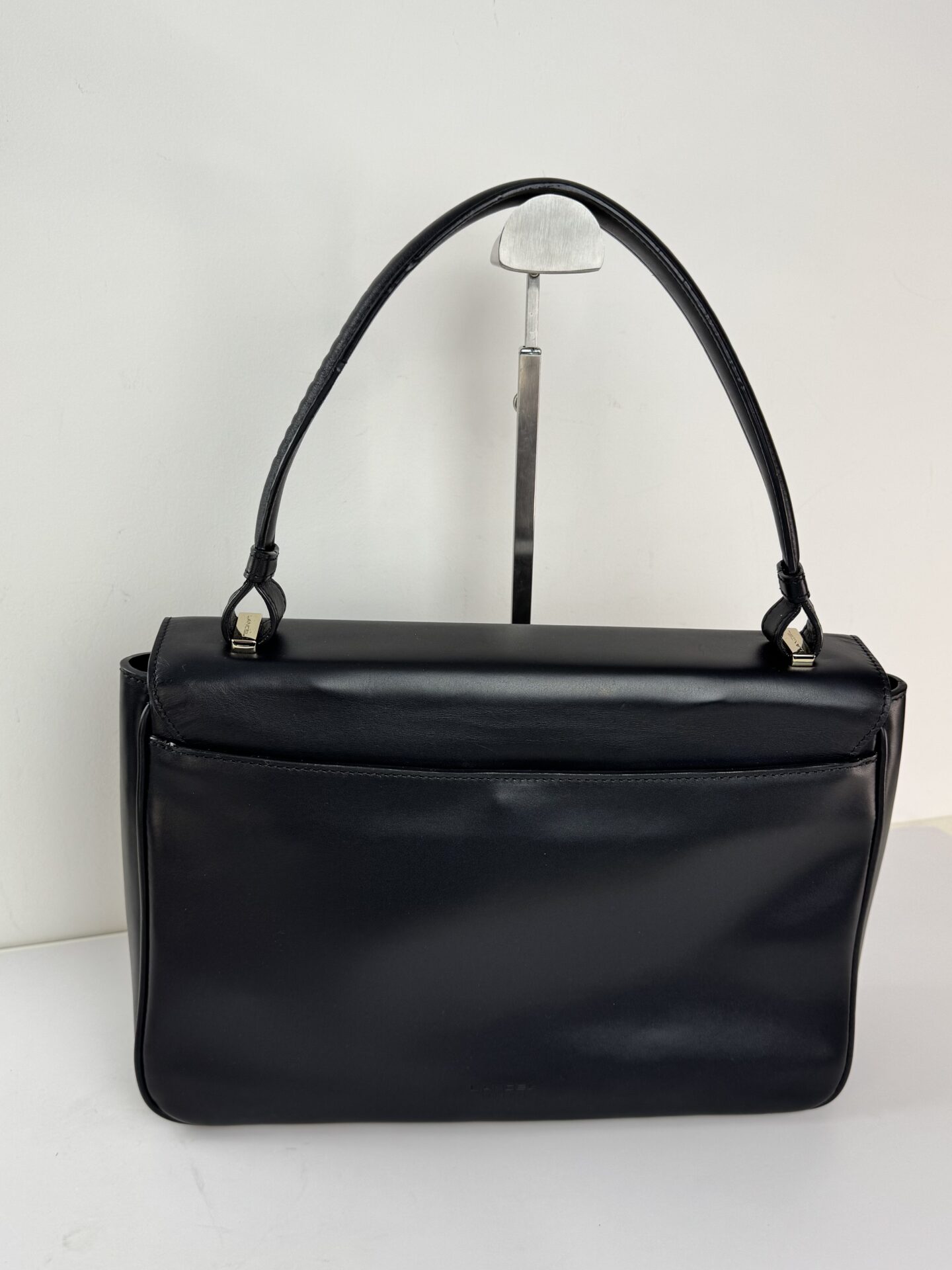 Sac Lancel en cuir noir, doté d’une anse rigide pour un porté main élégant.