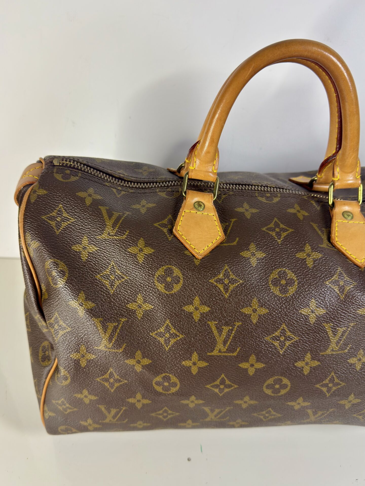 Sac à main Louis Vuitton Speedy 35 en toile monogram enduite marron et cuir naturel