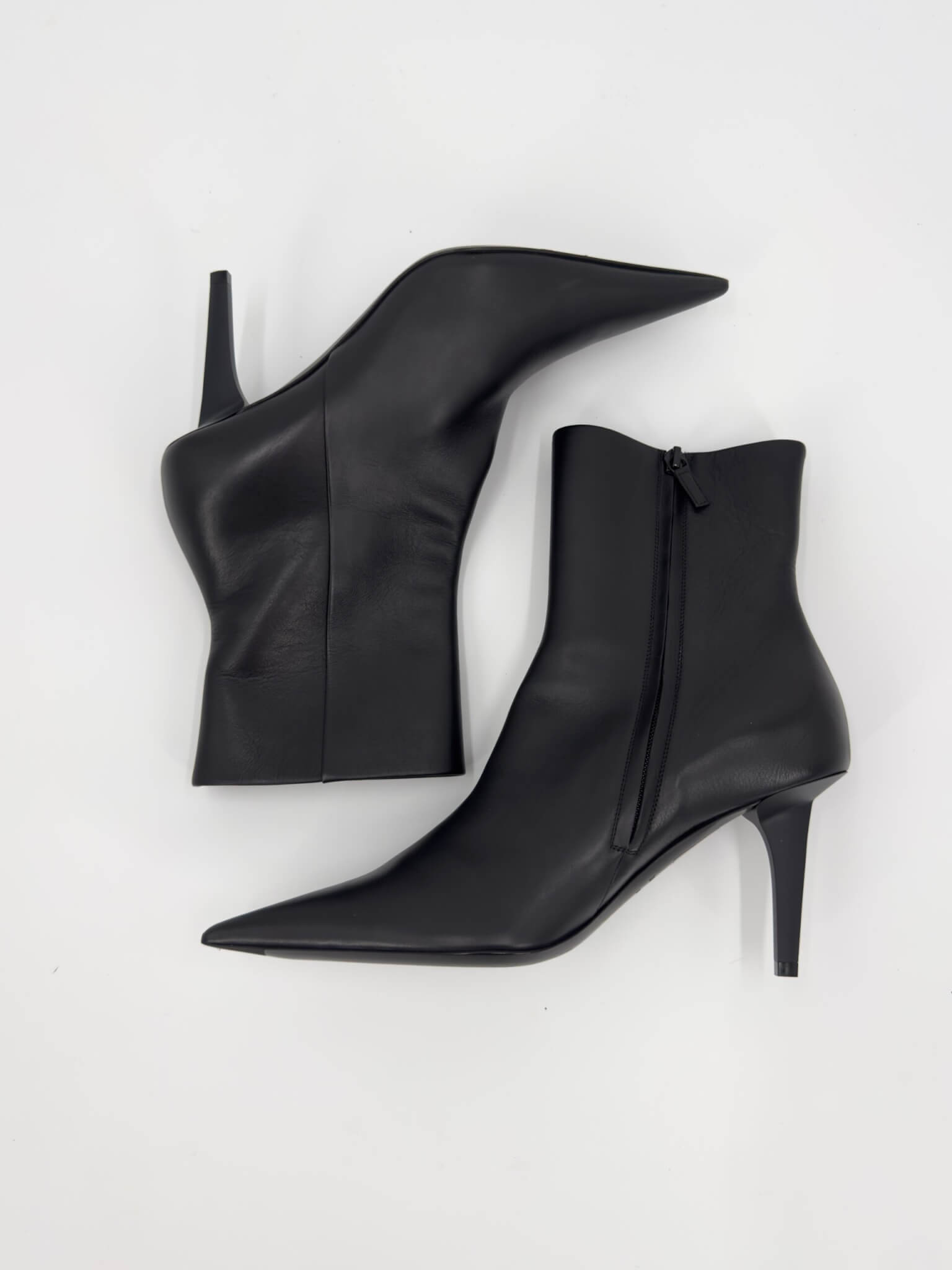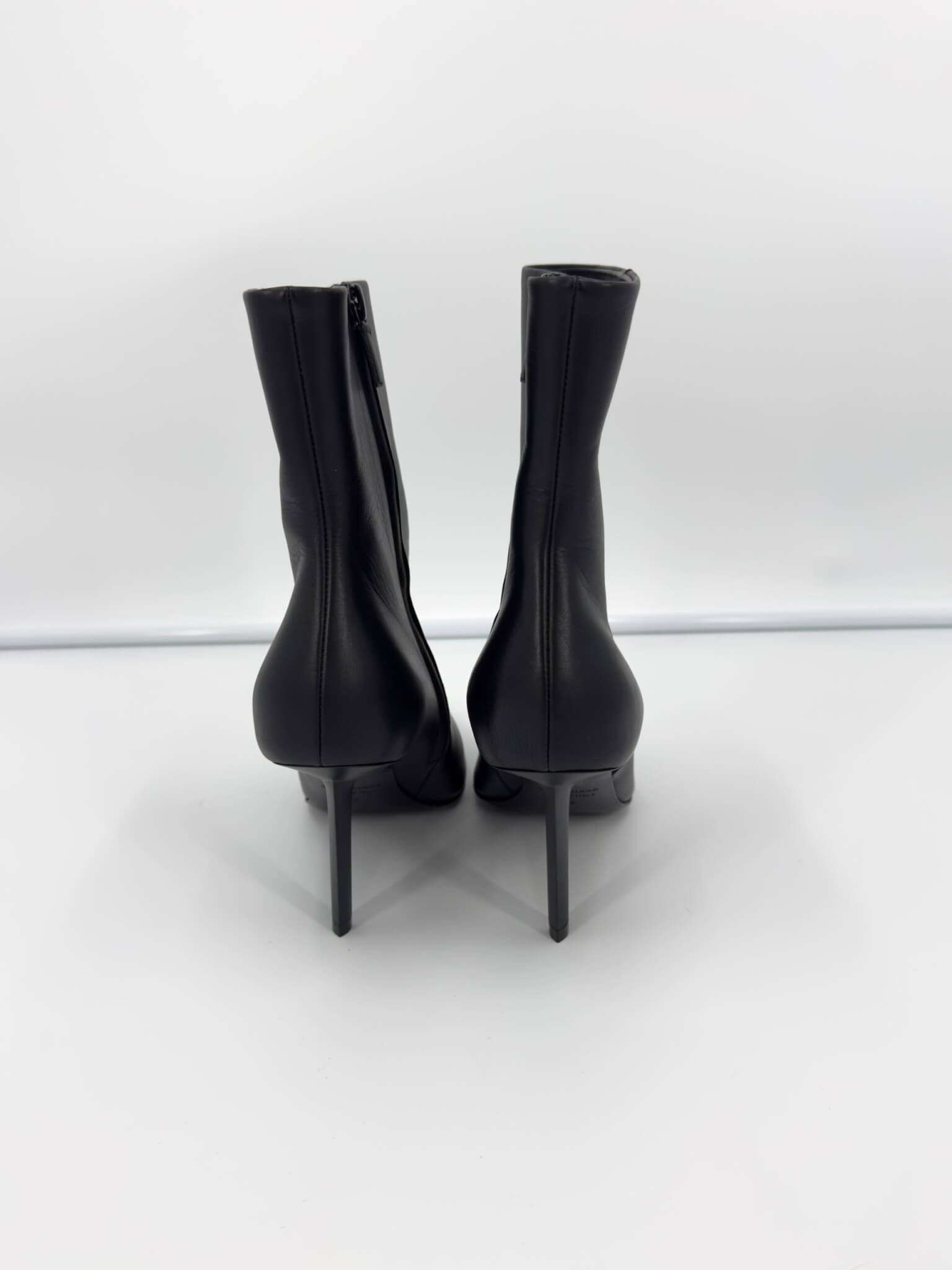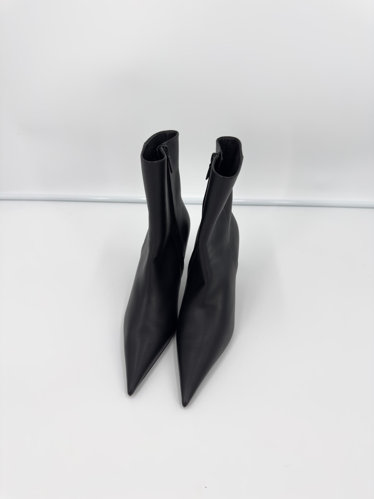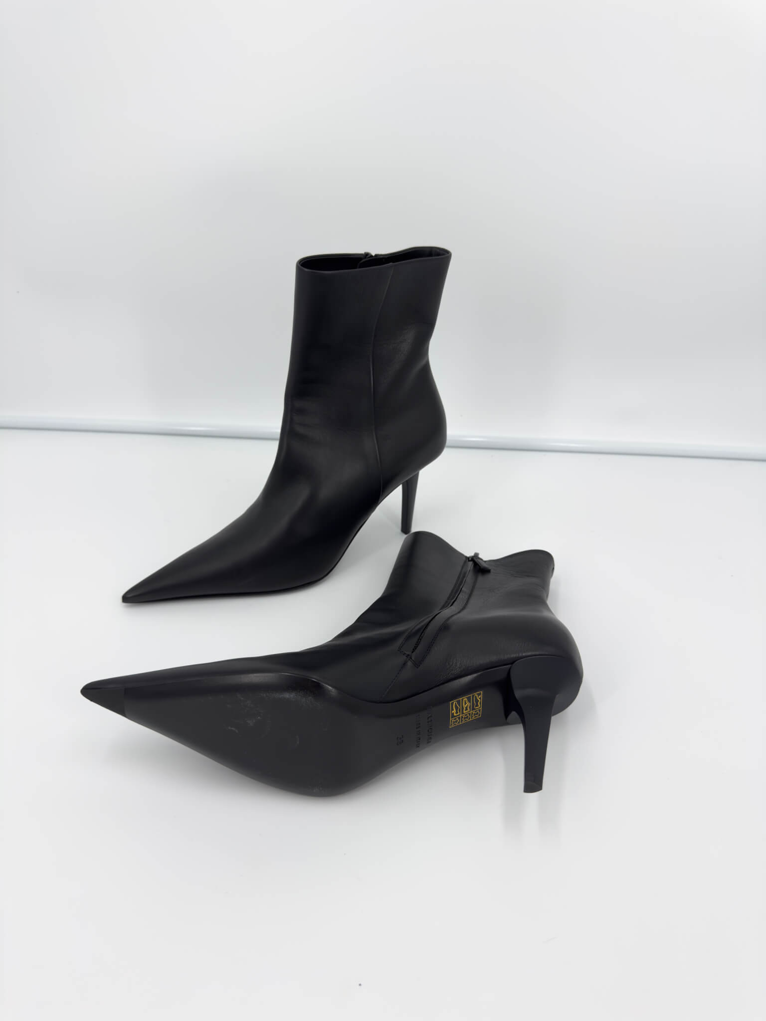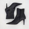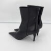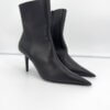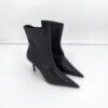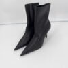 Bottines Balenciaga – modèle Knife Shark en cuir noir, bout pointu iconique et talon affiné pour une silhouette ultra-élancée. Fermeture éclair intérieure, ligne gainante et construction couture. Modèle en excellent état (portées 1h), vendu avec son dust bag d’origine, parfait pour sublimer instantanément une tenue.