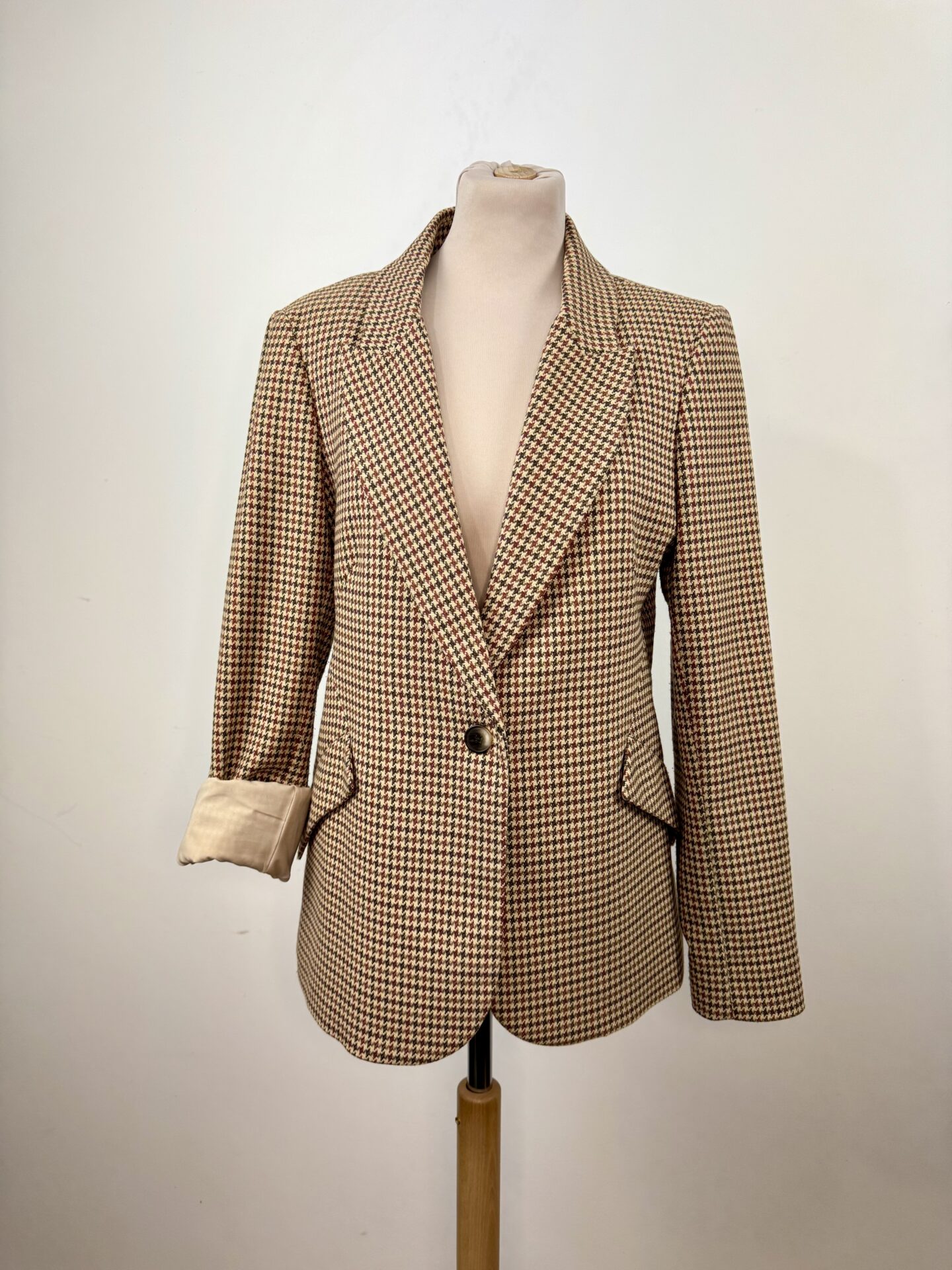 Veste blazer L’Agence à motif pied-de-poule – Coupe ajustée avec col tailleur, boutonnage simple et poches à rabat pour une silhouette chic et intemporelle.