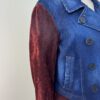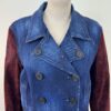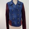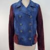 Veste blazer High veste en jean velours croisée à double boutonnage confectionnée en coton (97%) mêlant denim bleu et velours bordeaux. Col à revers, manches longues et poches discrètes. Un modèle original jouant sur le contraste des matières et des couleurs.